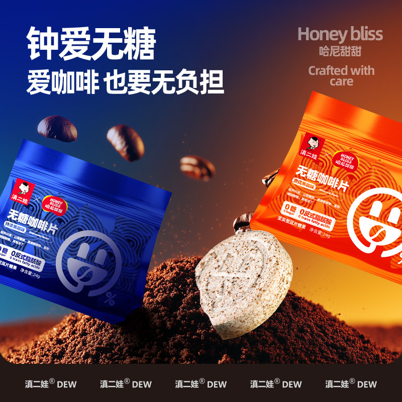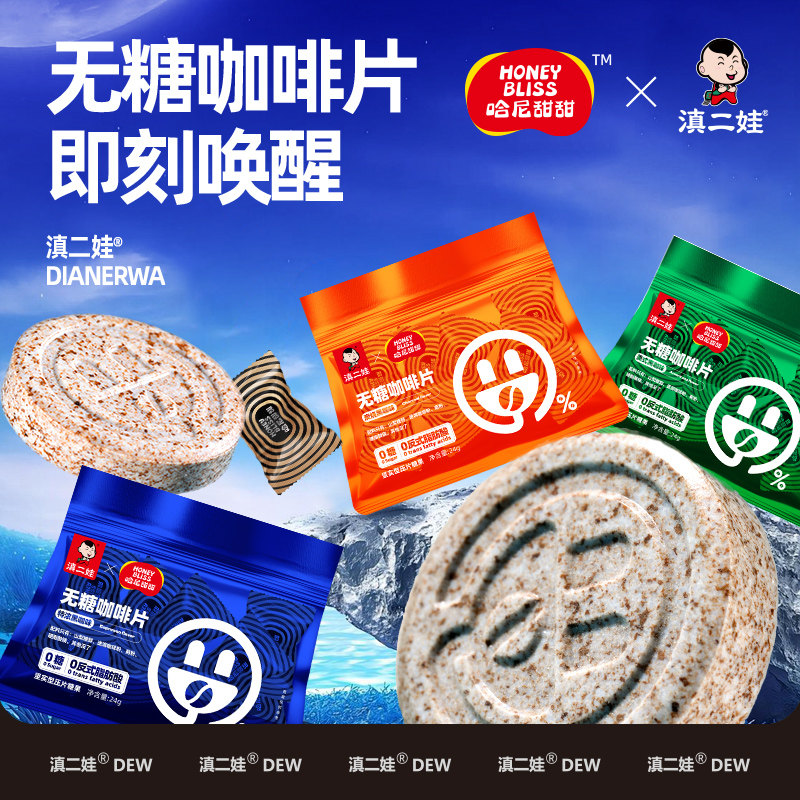 📚 滇二娃无糖特浓黑咖啡压片糖苦味糖果提醒神脑学生含片清新小零食