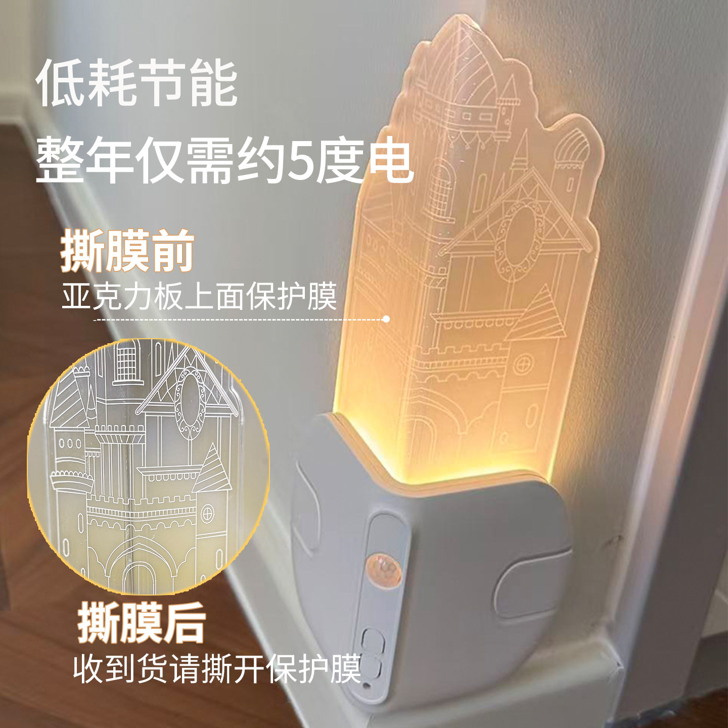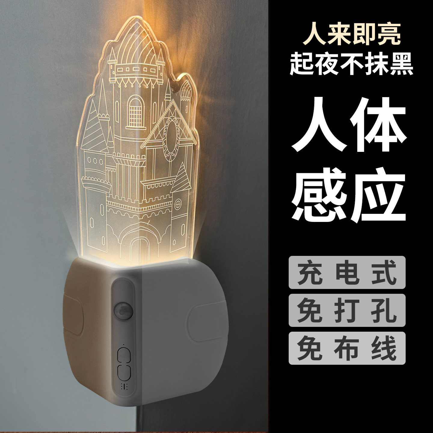 📚 充电式人体感应亚克力发光夜灯免打孔布线卧室起夜照明楼梯感应灯
