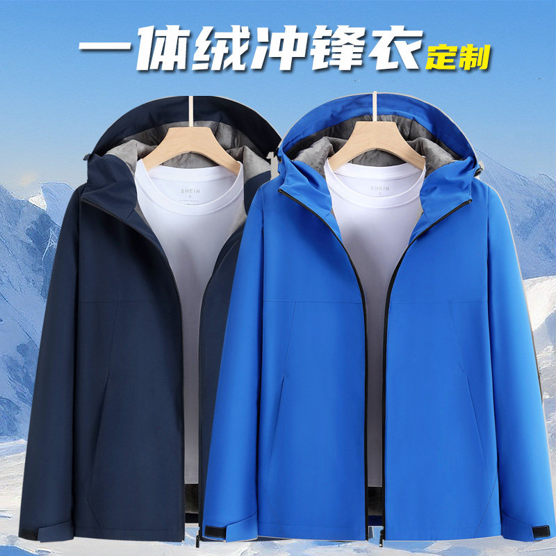 📚 秋冬加绒工作服定制冲锋衣加厚棉衣棉袄防雨防水外套定做印字LOGO