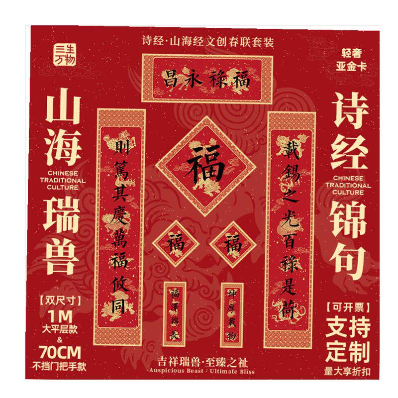 58¥ CA381 ndSDUKagLfV¥ https://m.tb.cn/h.7zzOP7l 禄永昌诗经对联2026s年马年新款山海瑞兽麒麟高端大门门贴春联. --------------------- 【原售价】50元 【现售价】50元。
