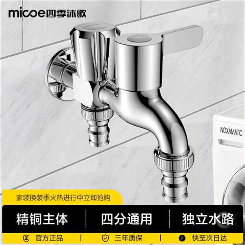 📚 四季沐歌洗衣机水龙头加厚精铜主体卫生间阳台拖把池水嘴快开龙头
