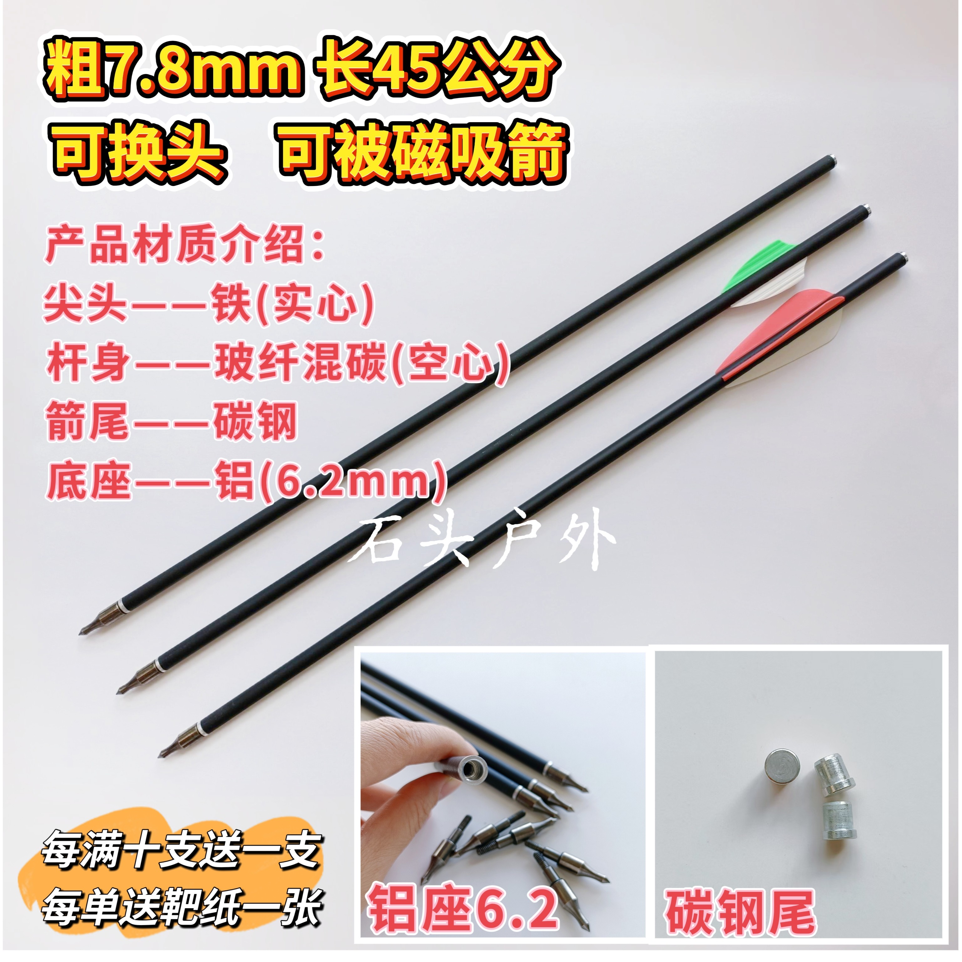 📚 8毫米无羽2羽3羽箭,可磁吸 可换头