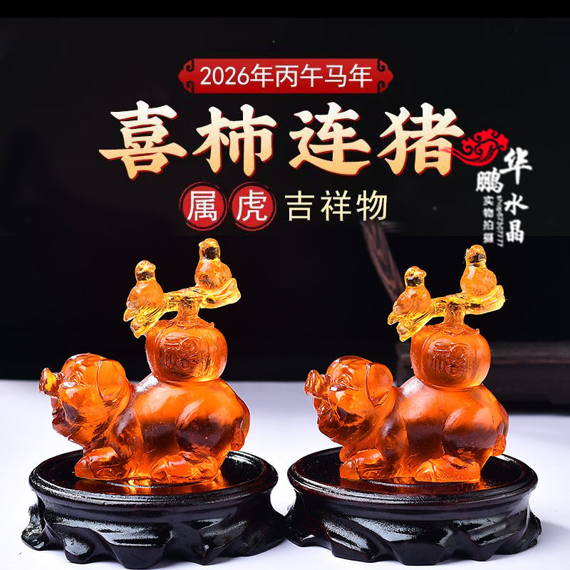 📚 易明开居喜柿连猪吉懿琉璃摆件属虎2026年马年吉祥物生肖虎饰品礼