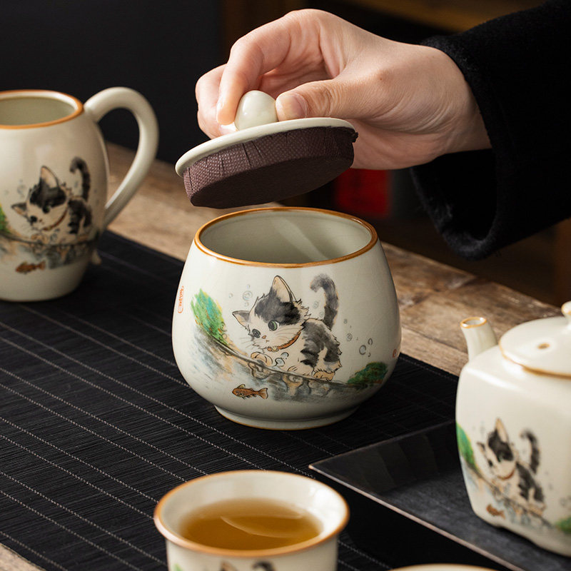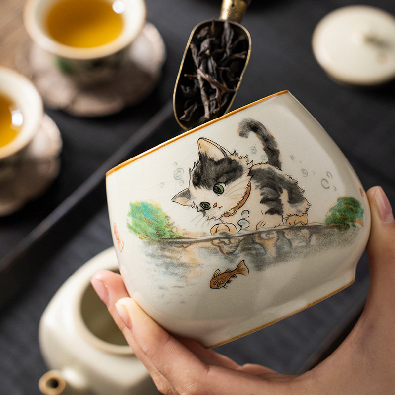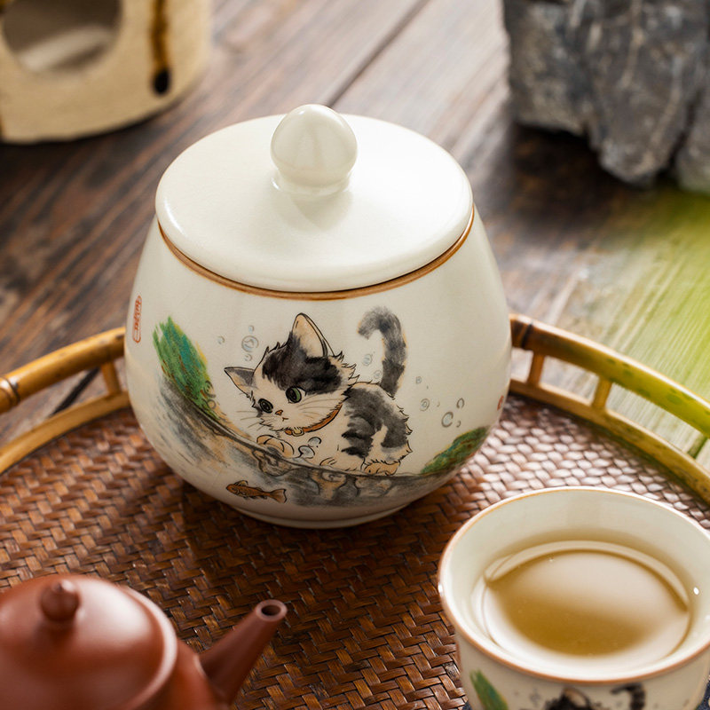 📚 汝窑萌猫茶叶罐陶瓷储存罐茶叶精品高档包装盒空礼盒2024新款定制