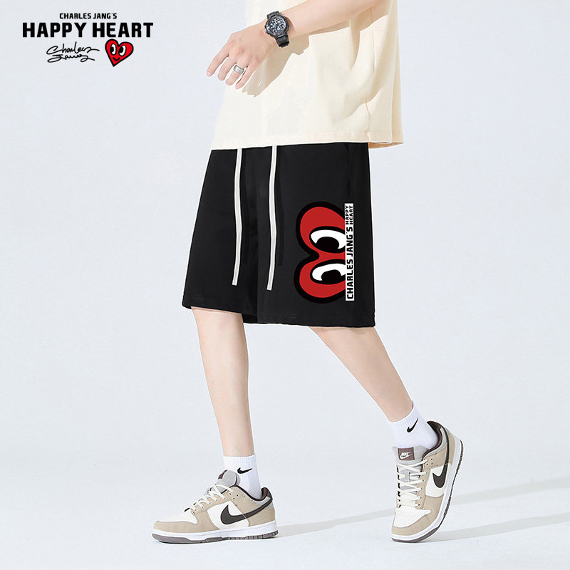 📚 查尔斯桃心 2026年夏季新款短裤男宽松休闲爱心印花抽绳五分裤子