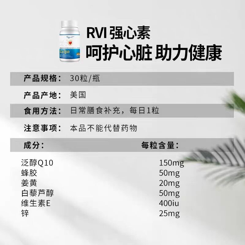 📚 RVI美国Royavita还原型辅酶Q10强心素150mg蜂胶姜黄30粒