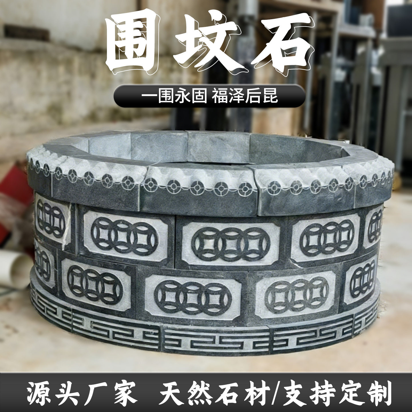 📚 家族墓地整体围坟石庄重墓园围栏墓地护边石定制陵园石材边界围合