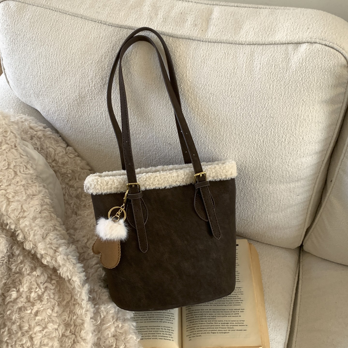 📚 大容量洋气毛边水桶包托特包上班通勤包2025新款潮百搭单肩包女款