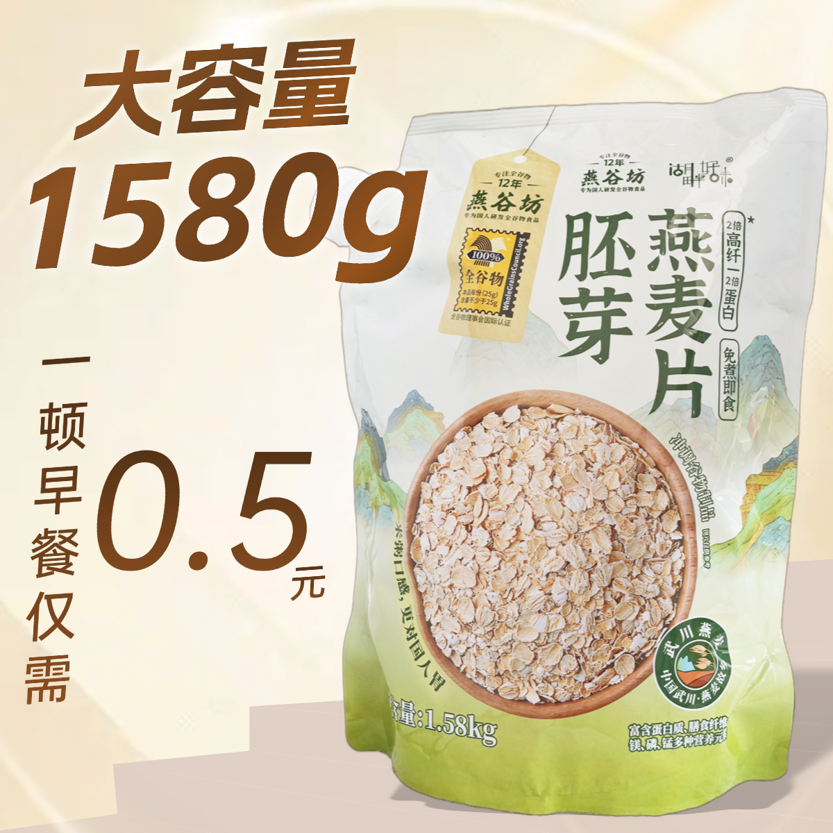 📚 燕谷坊胚芽纯燕麦片0添加蔗糖营养早餐即食冲饮代餐饱腹