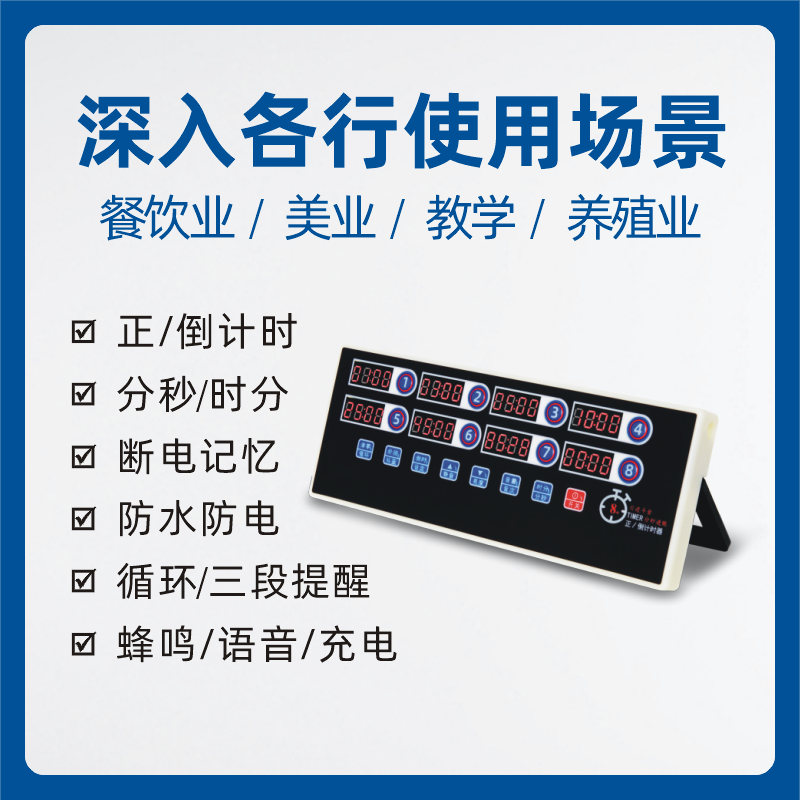 📚 商用厨房充电八通道正/倒计时器8段语音提醒炸鸡沙漏智能定时自动