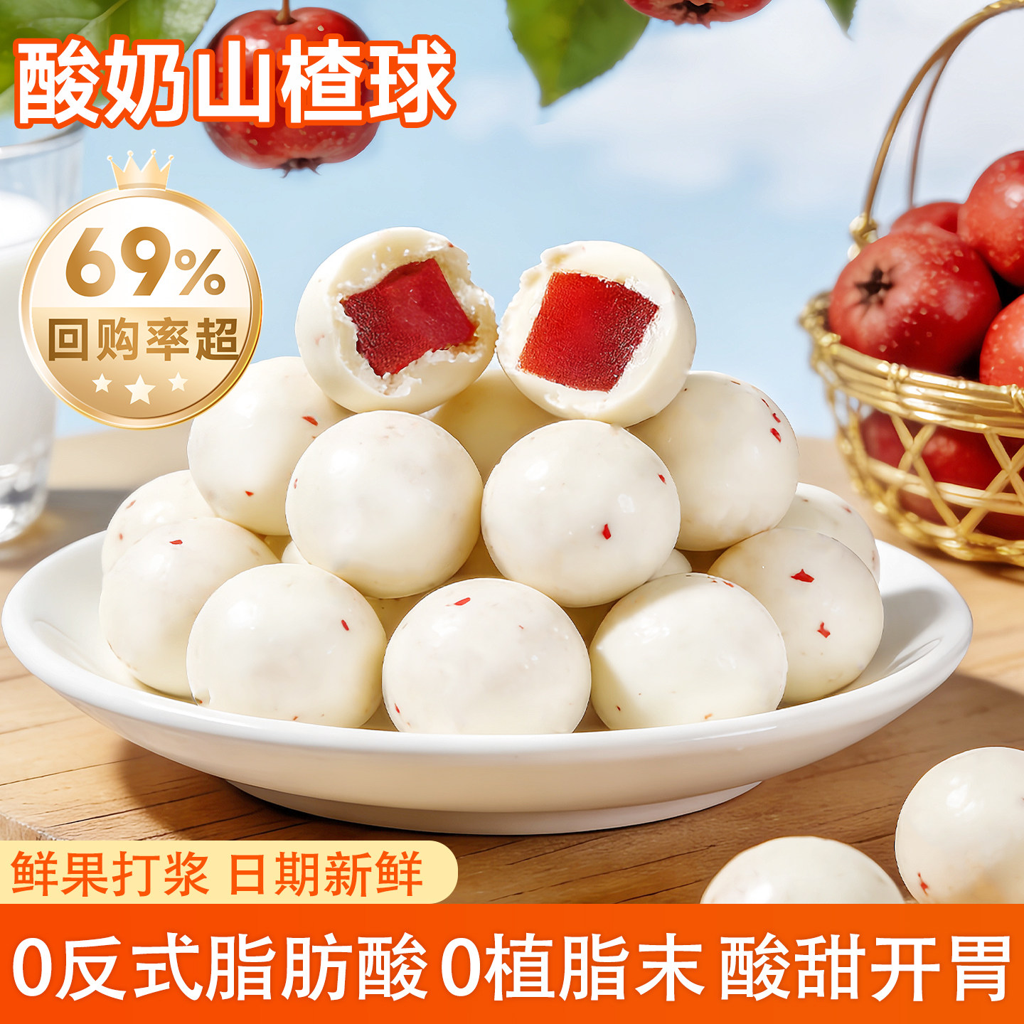 📚 山楂球酸奶球酸奶山楂丁山楂糖雪球开胃助消化零食好吃的网红小吃