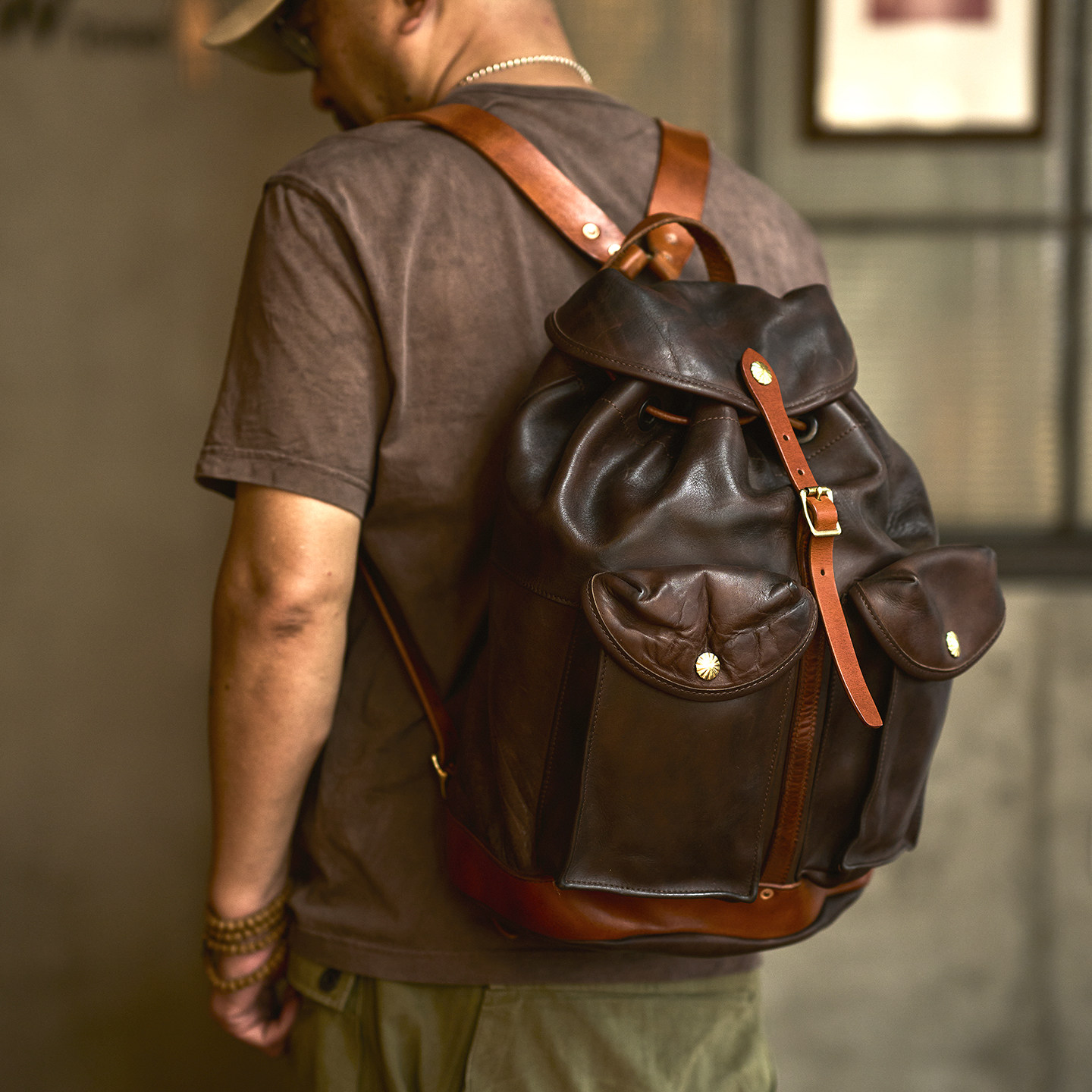 📚 牛爷!传世系列!重磅植鞣牛皮背包双肩包男女旅行包真皮伞兵包包