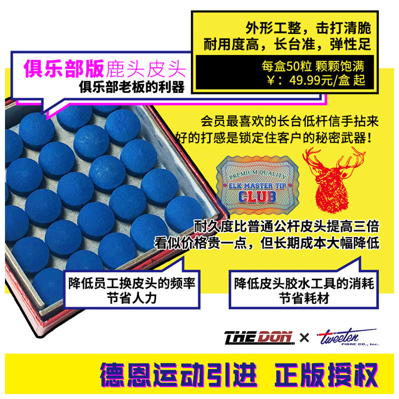 📚 Elk鹿头牌皮头公杆俱乐部斯诺克台球杆头小头黑八10.5九球枪包邮
