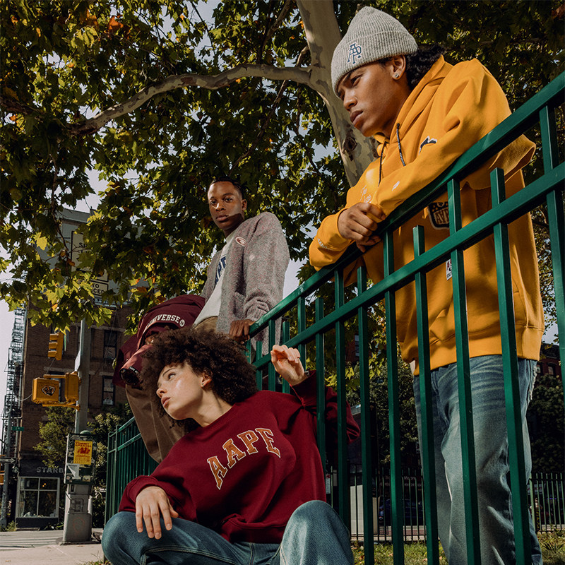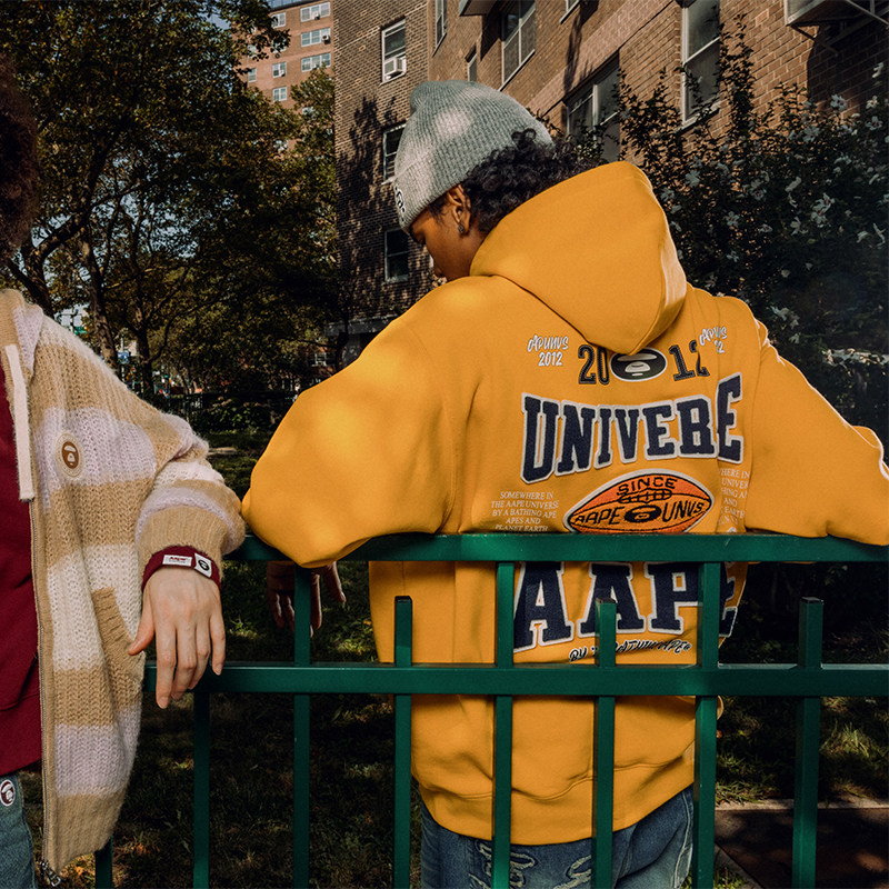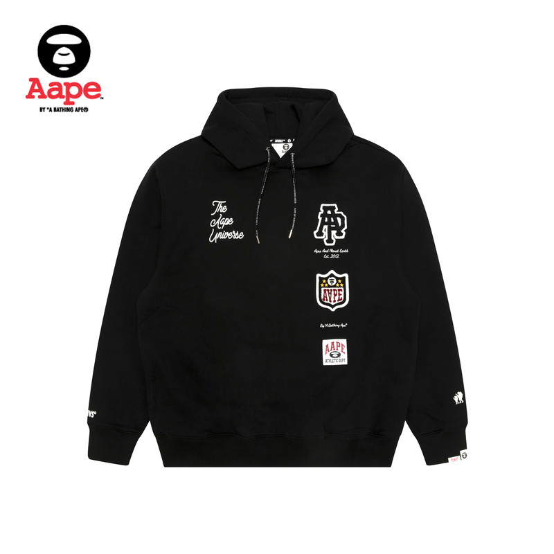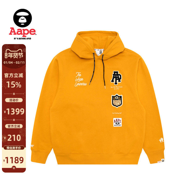 📚 Aape旗舰店男装秋冬校园猿人毛巾徽章休闲潮流连帽卫衣C386XXP