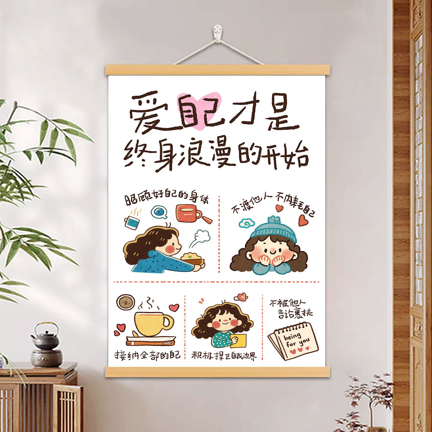 📚 首先你要快乐其次都是其次装饰画上班情绪稳定神器办公室卷轴挂画