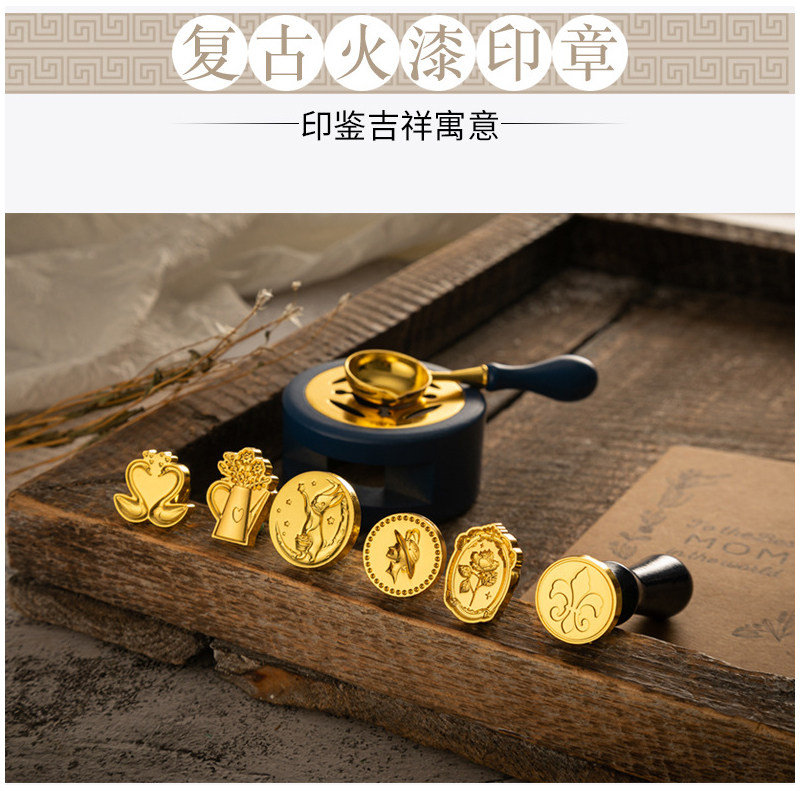 📚 复古麋鹿中国风火漆印章套装礼盒蜡粒章头火漆炉全套女童玩具文艺高级感信封封口手帐印章男生款生日礼物送人