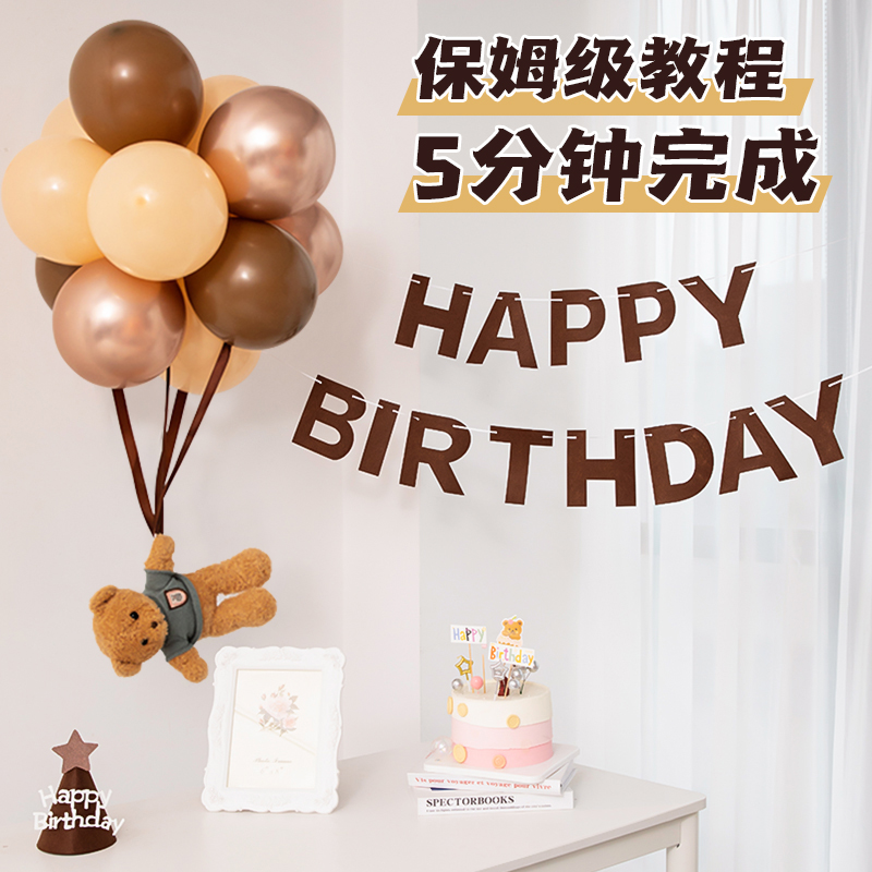 📚 生日装饰场景小熊热气球一周岁布置儿童宝宝派对背景墙布置男女孩