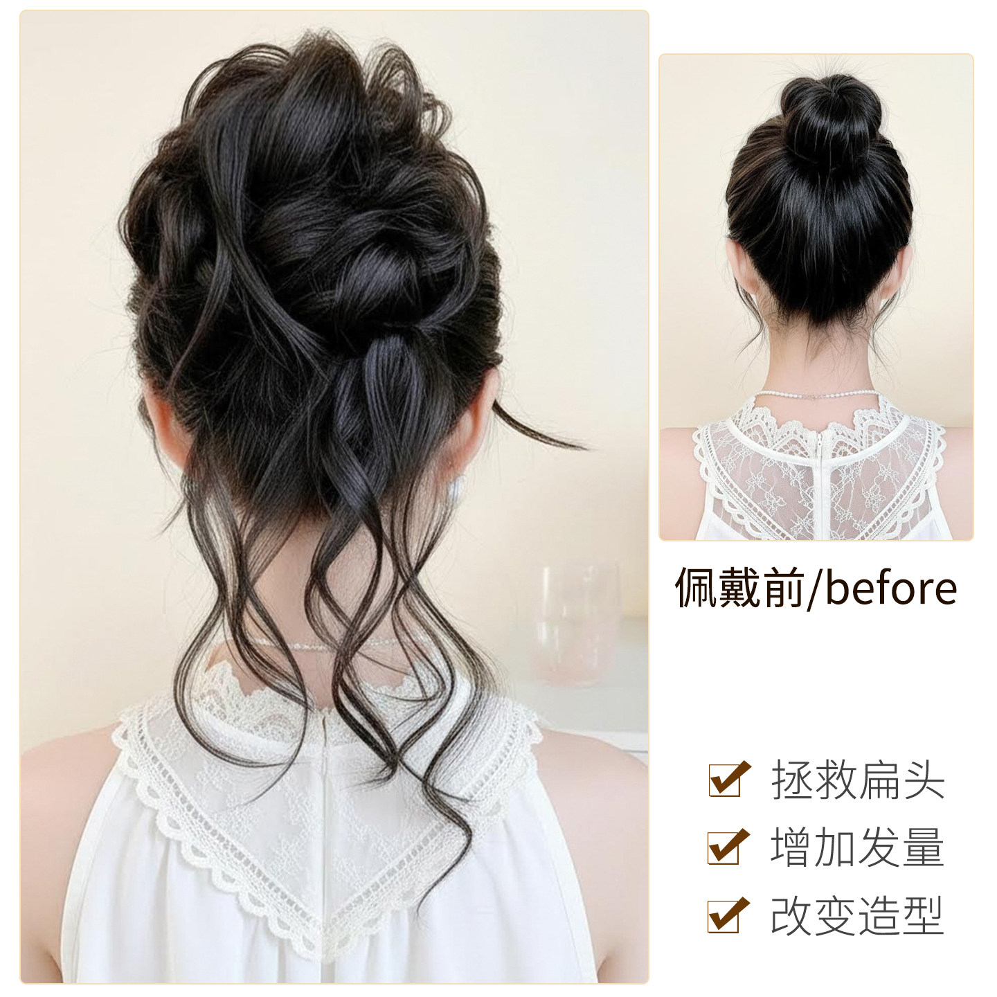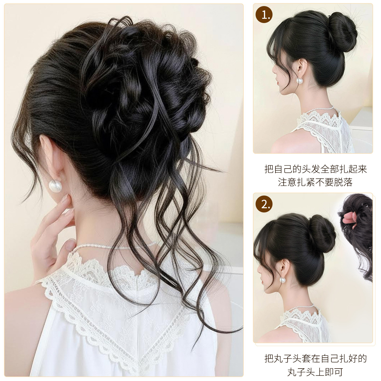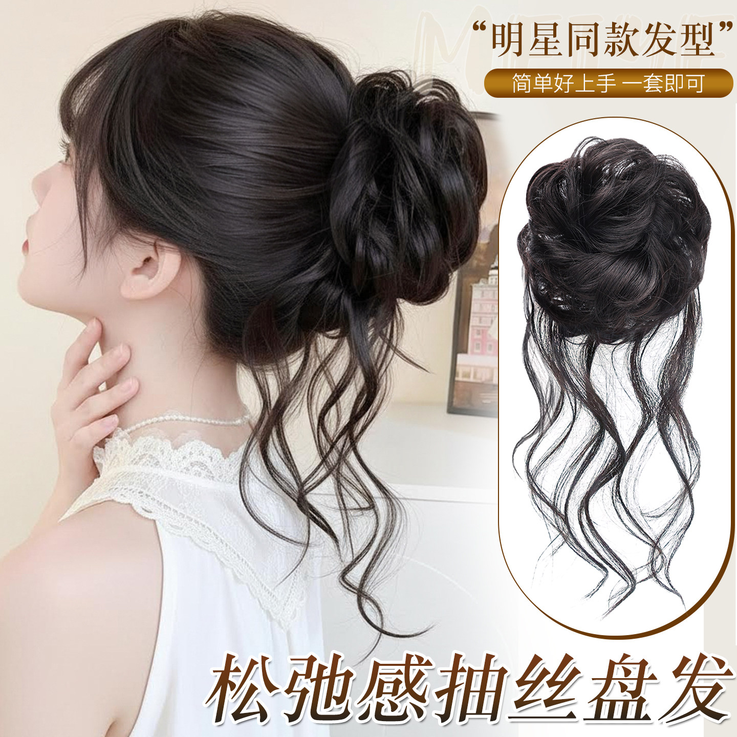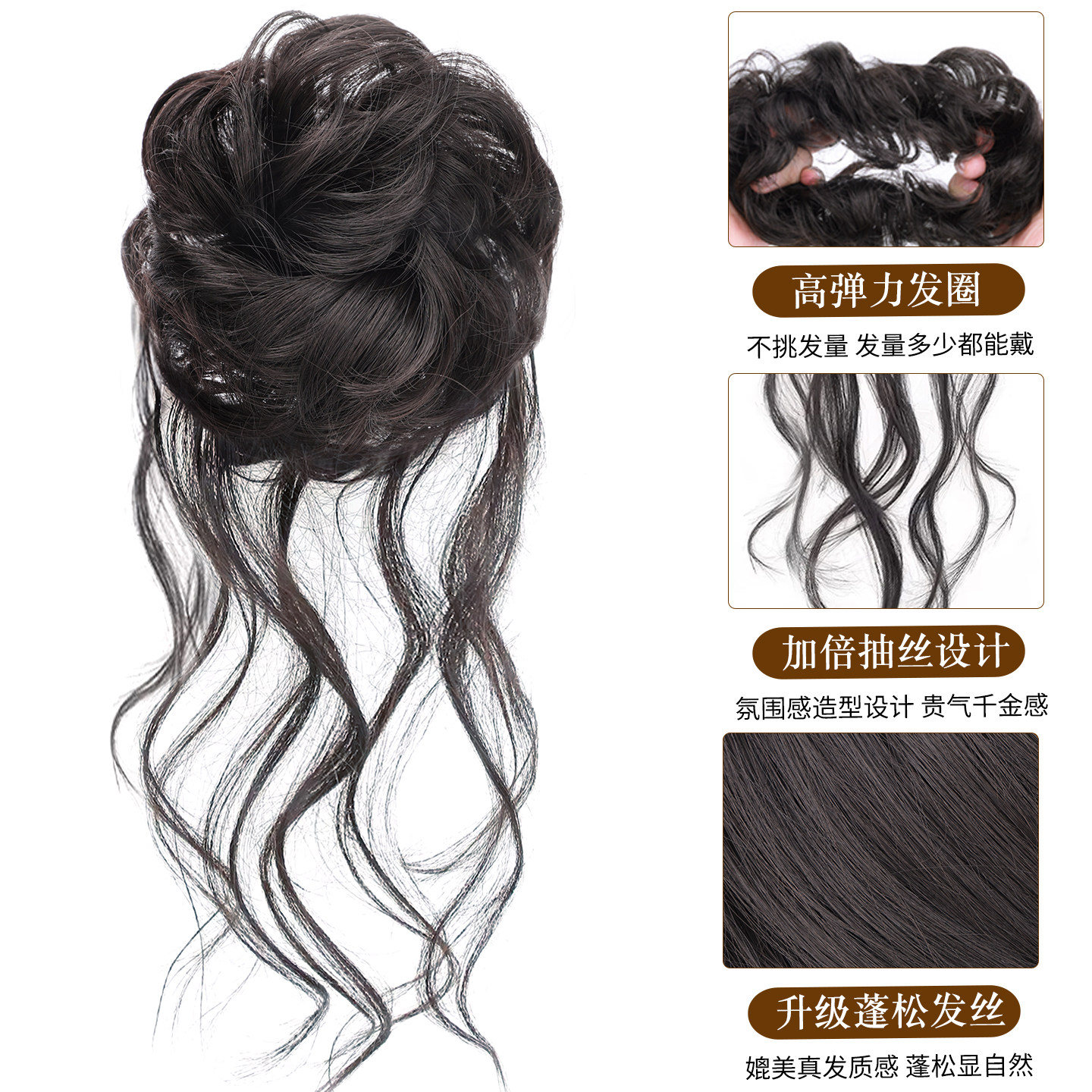 📚 龙须丸子头假发发圈仿真发抽丝花苞头自然蓬松盘发神器假发包发髻