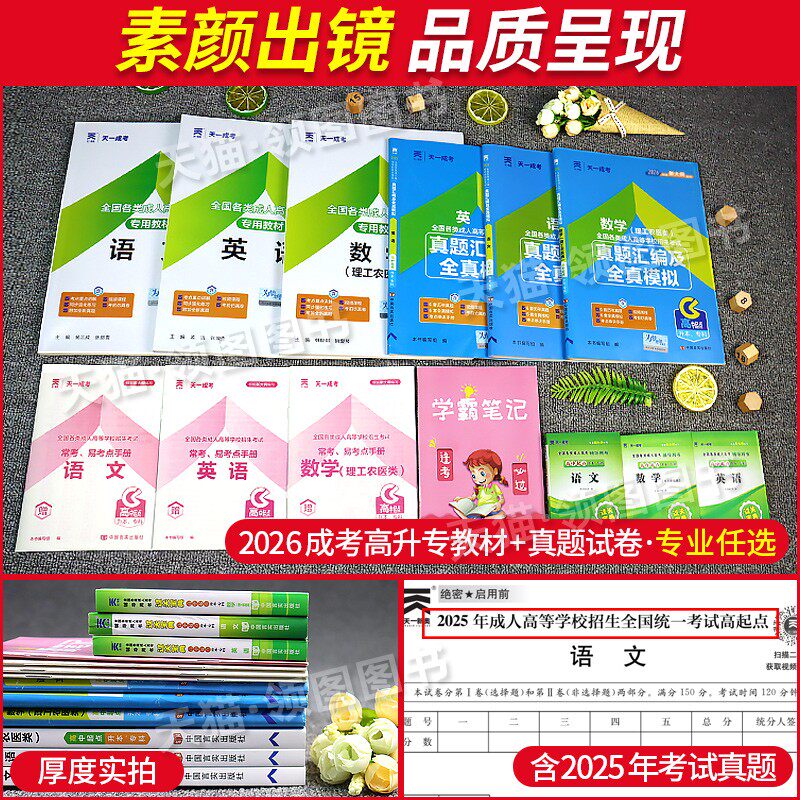 📚 教材试卷全套】天一成人高考2026年新版高升专升本复习资料考试真题语文英语数学文理科全国成考高起点广东浙江江苏山东河北河南省