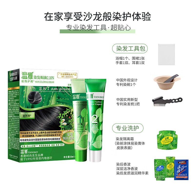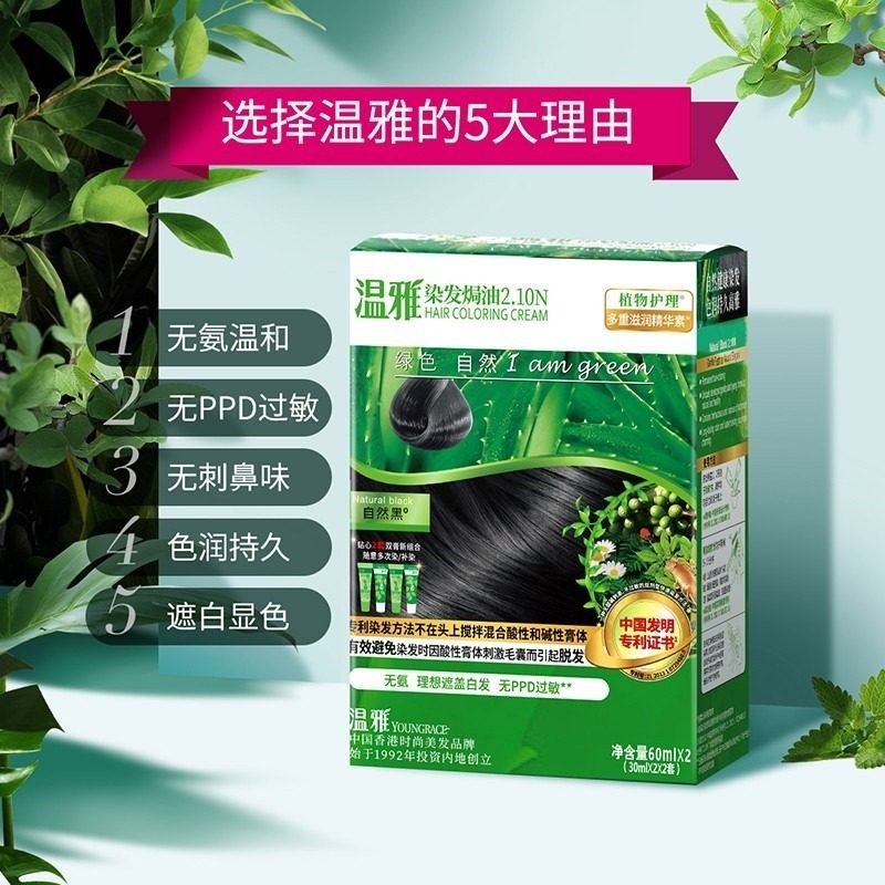 📚 温雅染发剂正品天然植物无氨味焗油膏60ml*2盖白发栗棕黑色染发膏