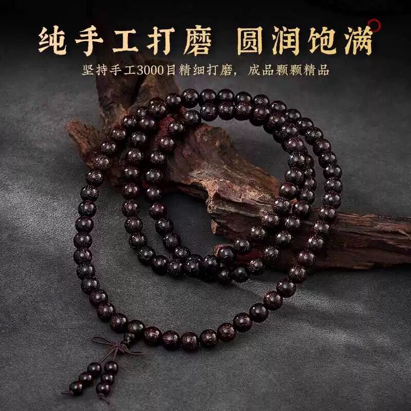 📚 FJDF830021 无礼盒 小叶紫檀沧桑老料手串0.8*108