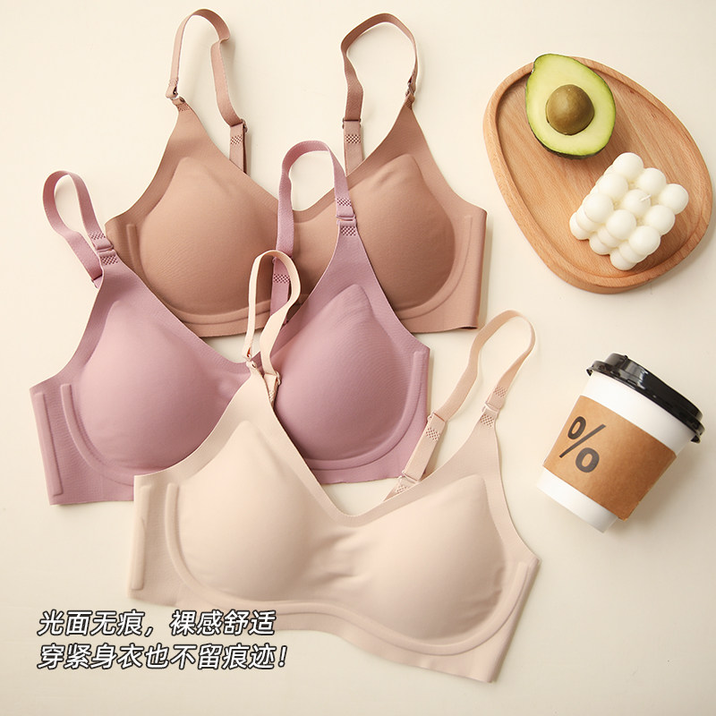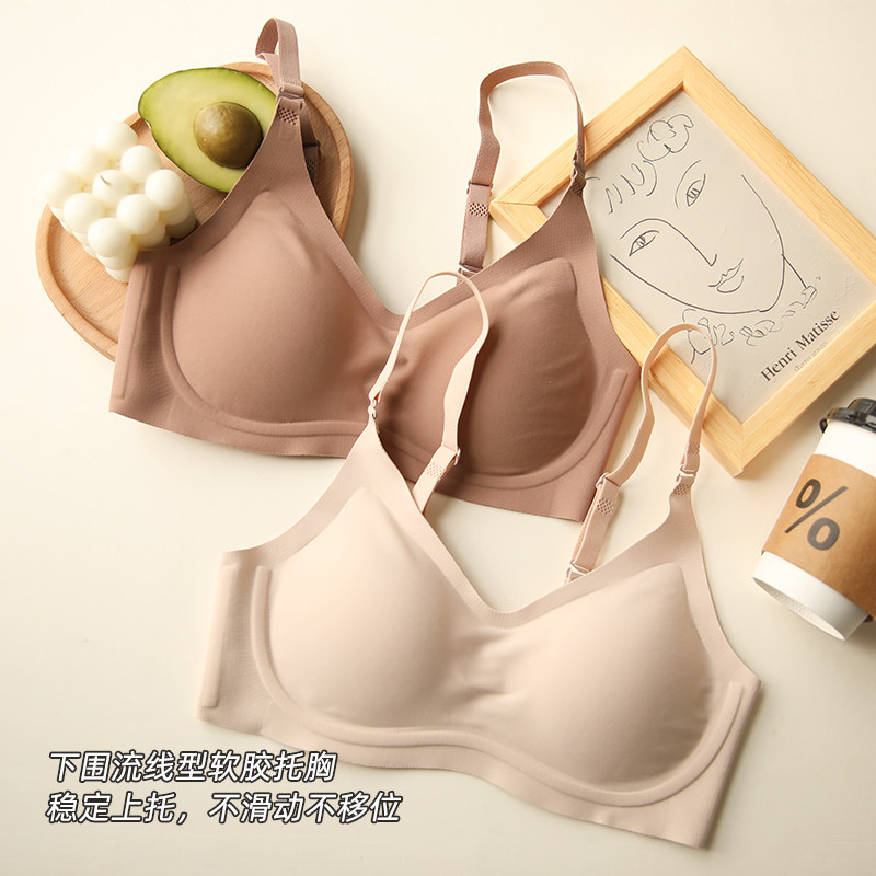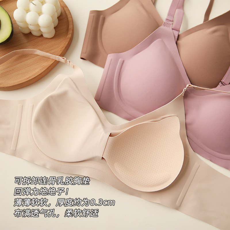 📚 松岛屋薄款光面无痕文胸无钢圈乳胶胸垫大胸显小S少女内衣纯色胸