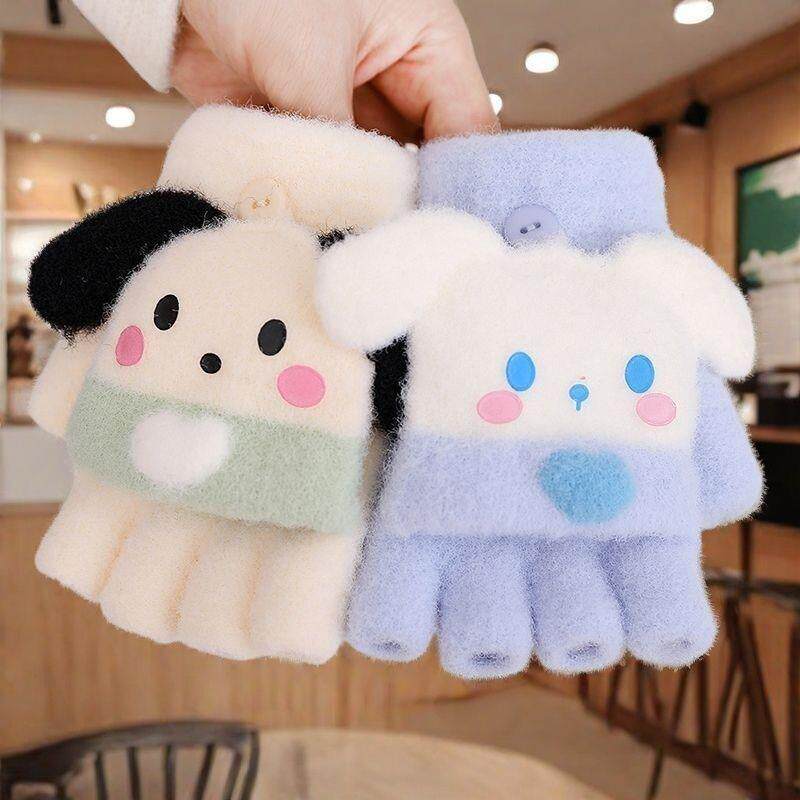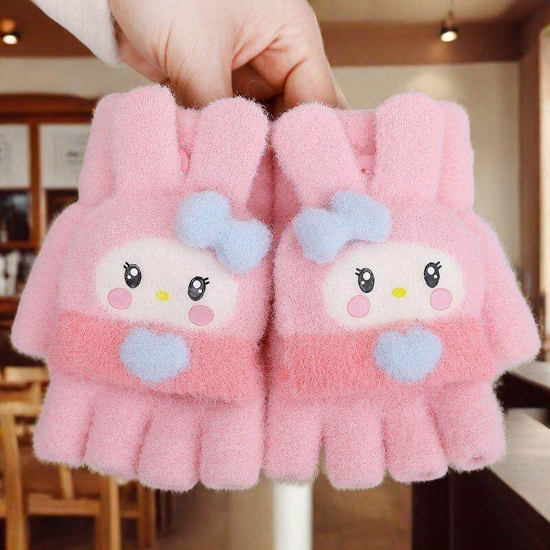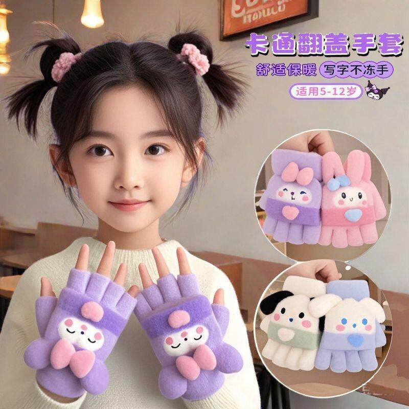 📚 女童男孩冬可爱保暖手套宝宝儿童半指套季加厚小学生写作业五指套