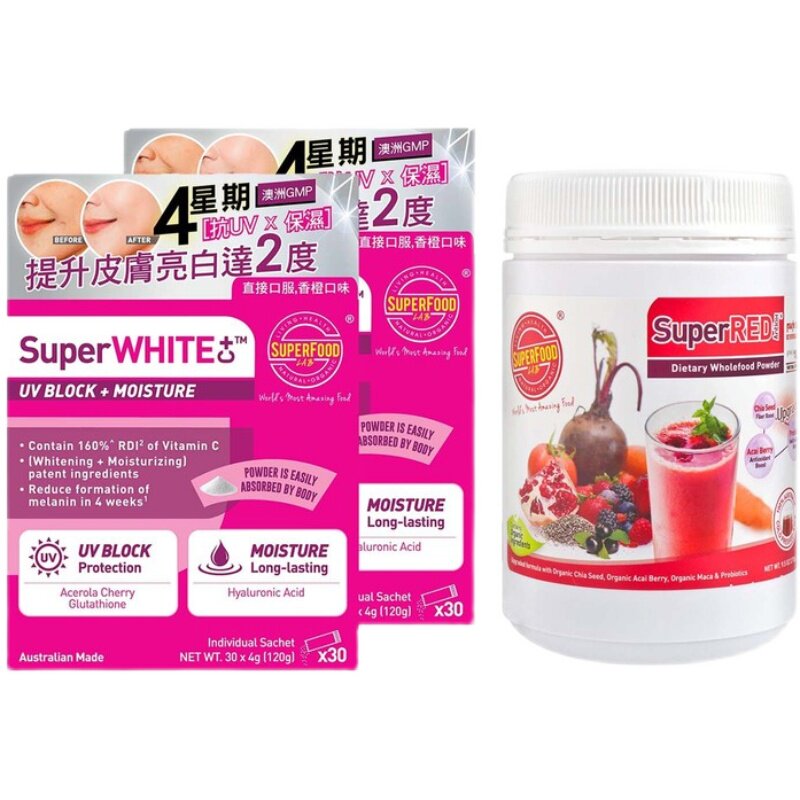 📚 SUPERFOOD LAB - 超级抗氧美肌红粉 超级亮白C +UV素 270G+120GX2