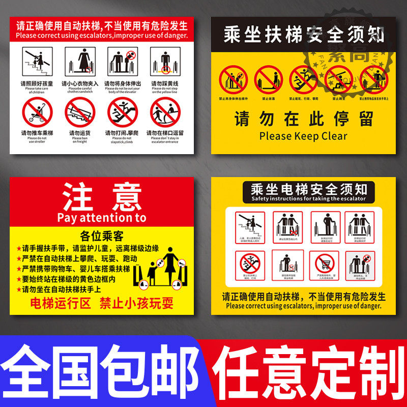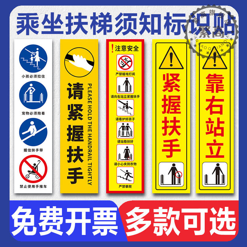 📚 乘坐电梯安全须知标识牌贴纸 自动扶梯安全警示提示牌商场超市电梯手扶梯注意事项紧握扶手禁止嬉戏提示标志
