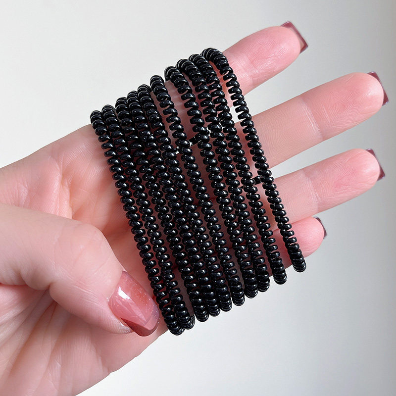 📚 电话线橡皮筋发圈女扎头发绳头饰高马尾胶圈皮套电线小号加粗细黑