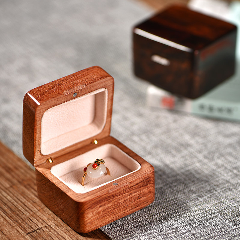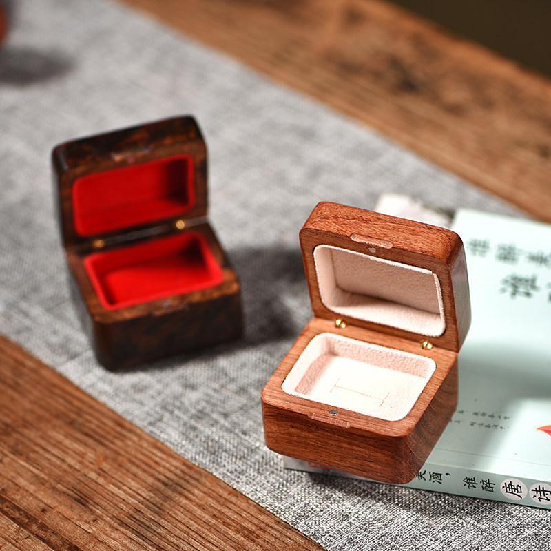 📚 红木戒指盒求婚婚礼对戒指婚戒钻戒盒实木盒精致小首饰扳指收纳盒