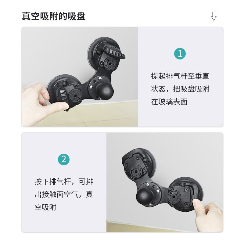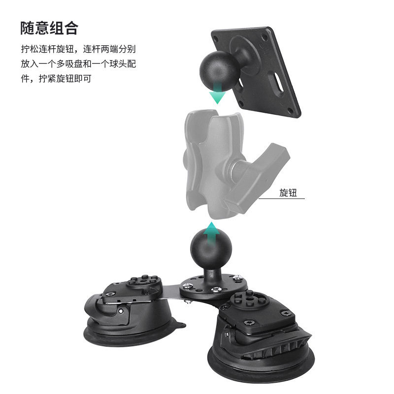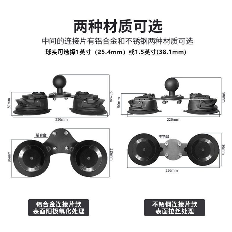 📚 轮船前挡玻璃双吸盘平板球头支架无损安装汽车玻璃双吸盘支架