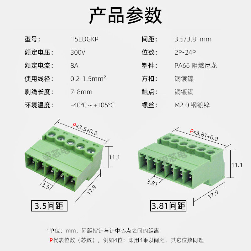 📚 15EDGKP3.5mm接线插座3.81mm免焊对接对插拔式接线端子2EDGRK针座