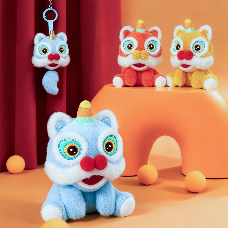 📚 2026可爱醒狮吉祥物新年春节装饰品公仔年兽小号招财舞狮挂件挂饰