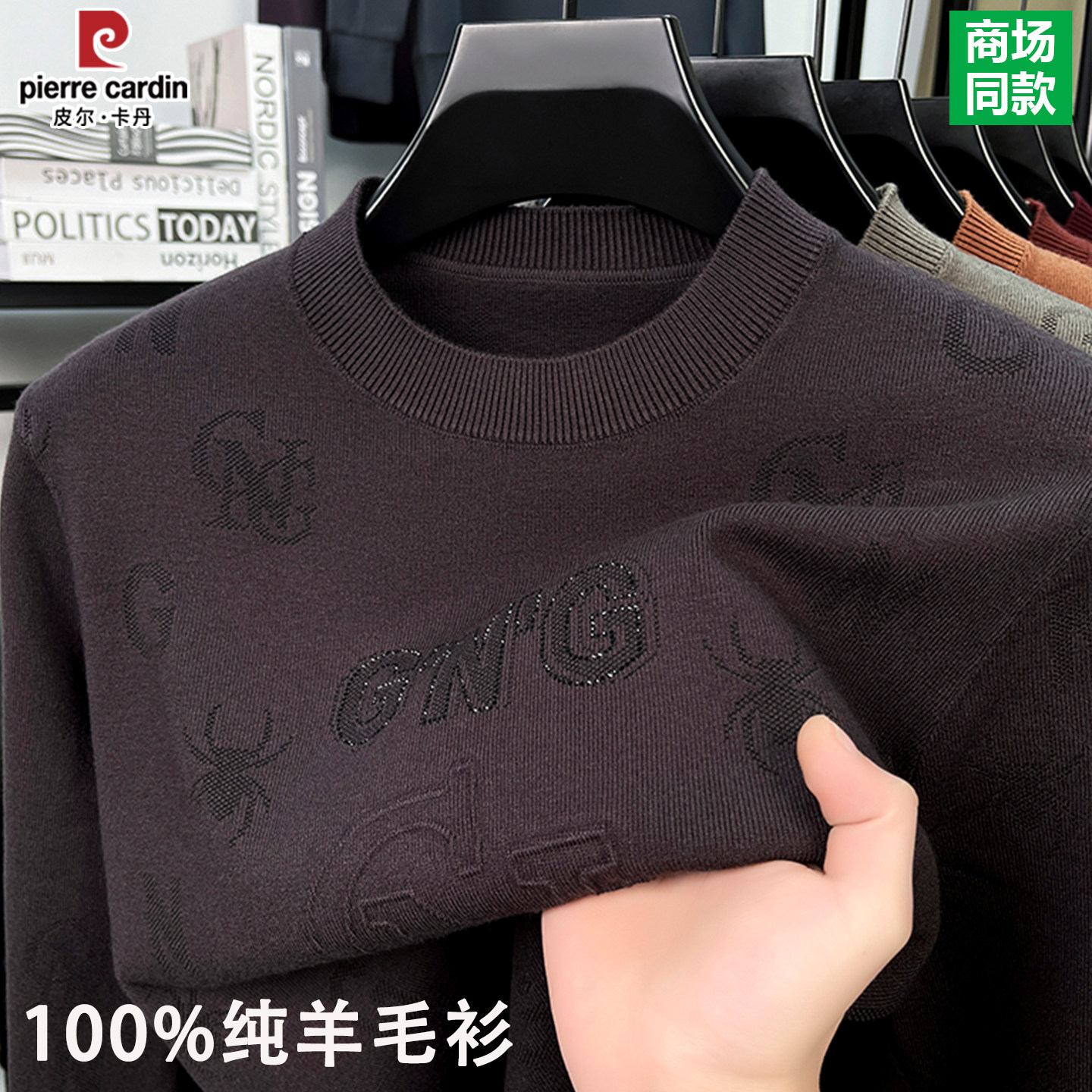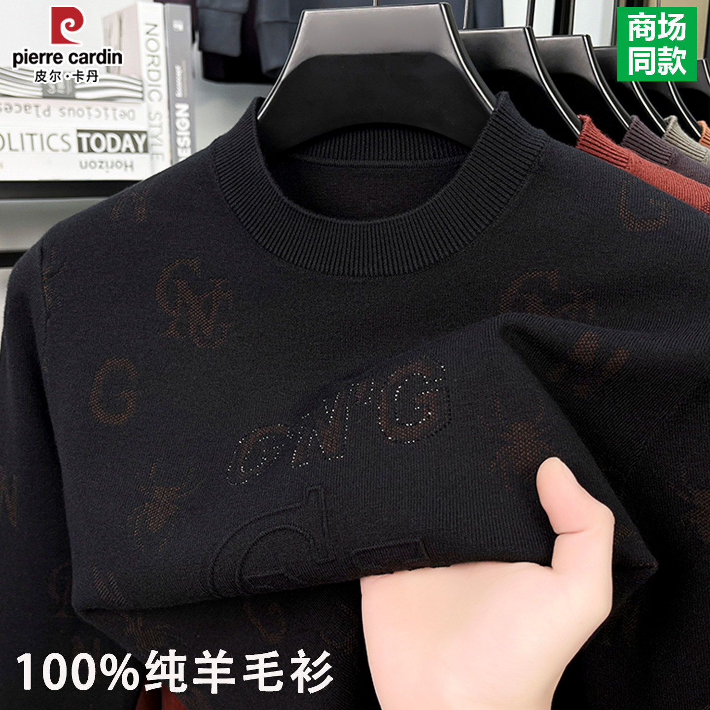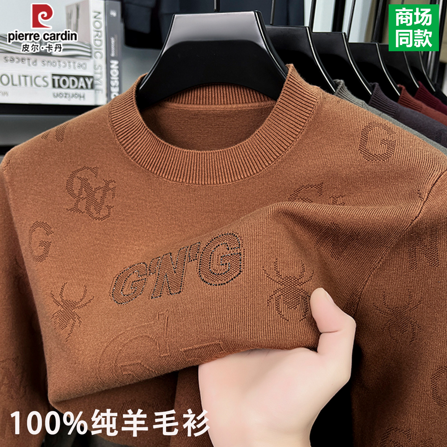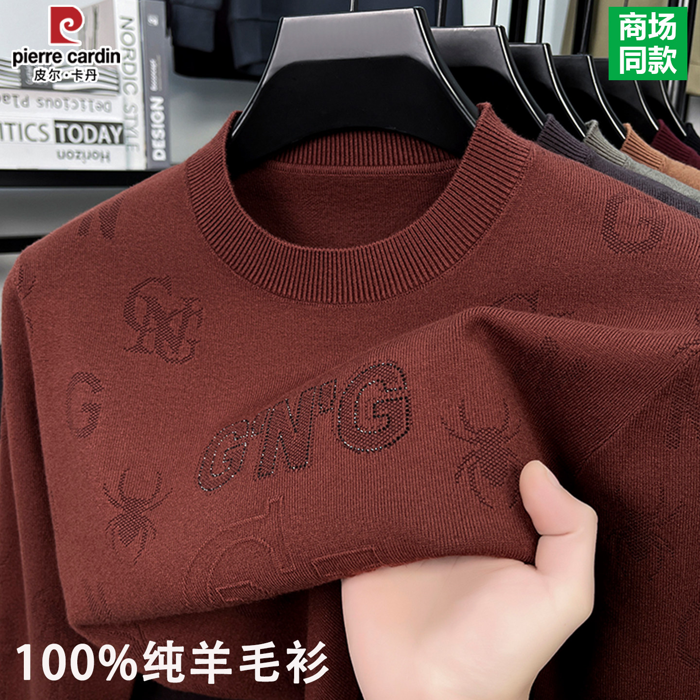 📚 皮尔卡丹100%纯羊毛衫男士圆领加厚保暖毛衣冬季爸爸装针织打底衫