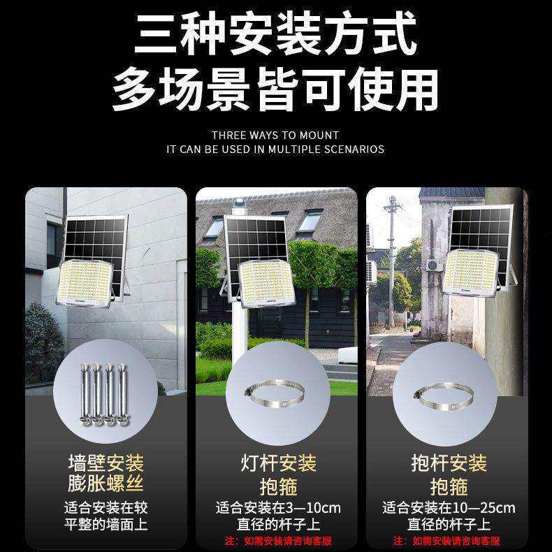 📚 2024年新款太阳能分体投光灯高亮曲屏三面发光透镜灯珠户外庭院灯
