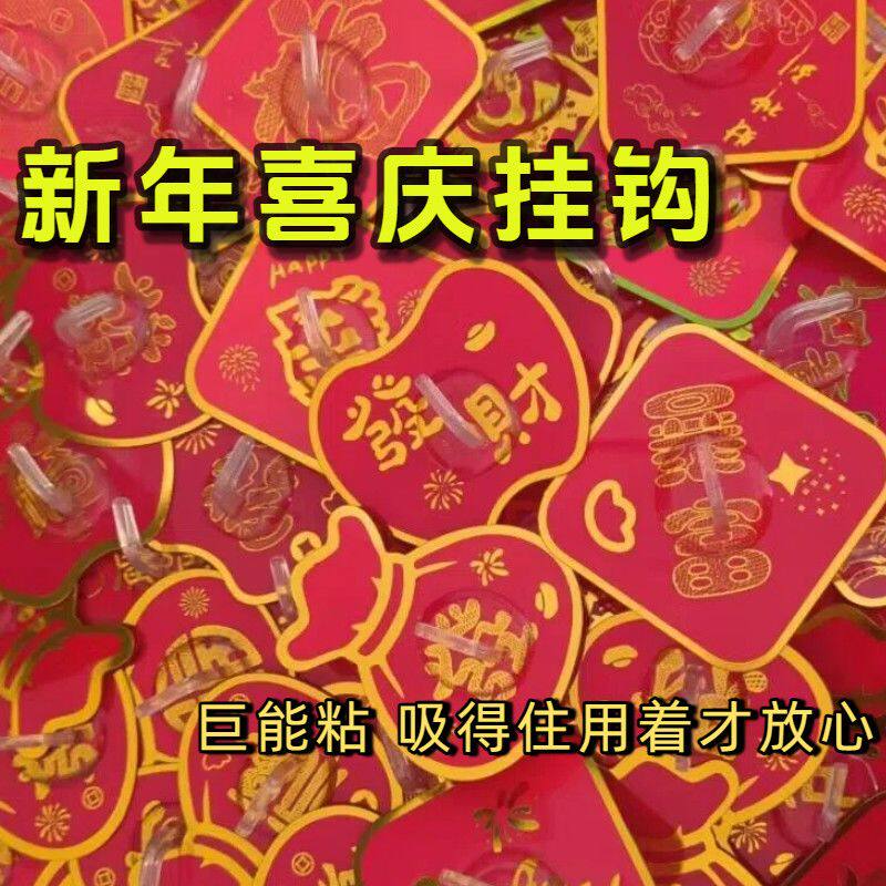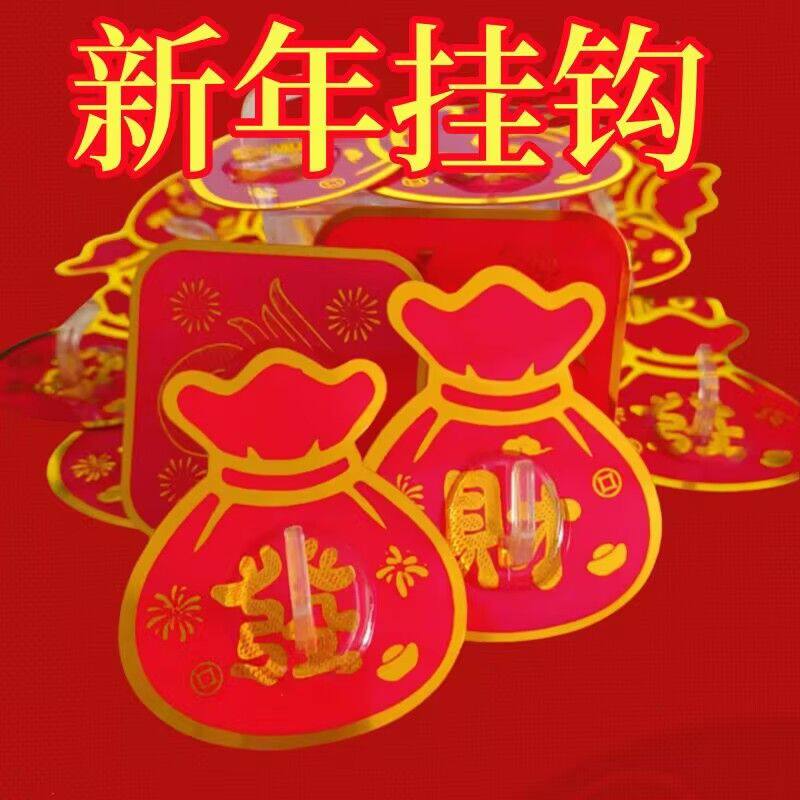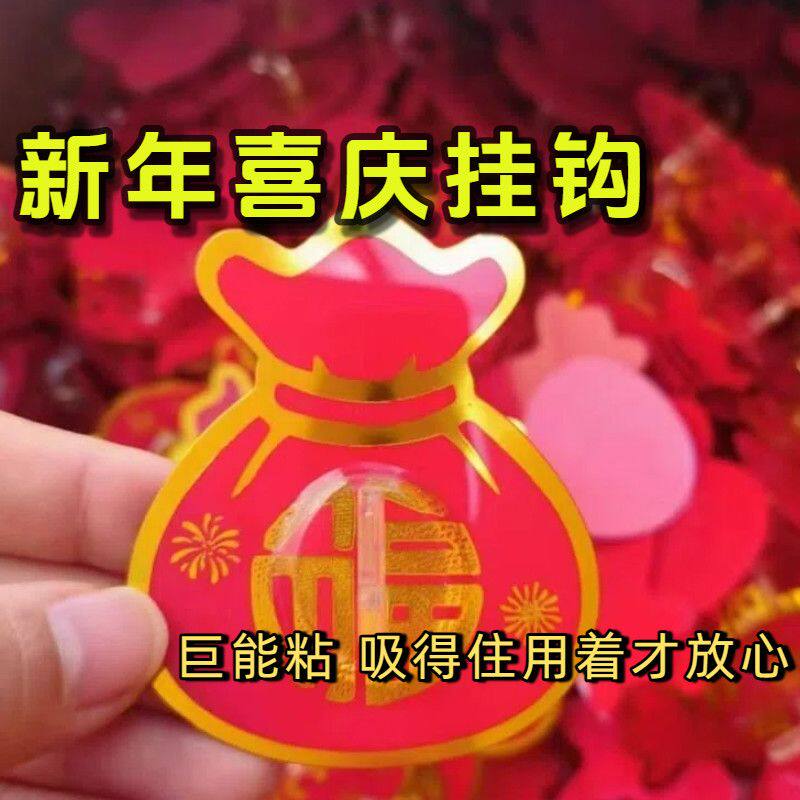 📚 红色福袋挂钩超强粘力免打孔无痕自粘墙上强力承重多功能收纳挂钩