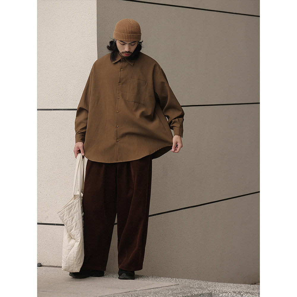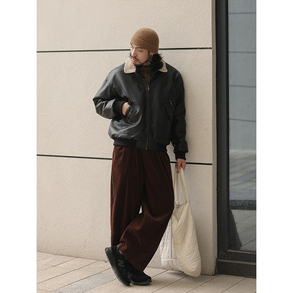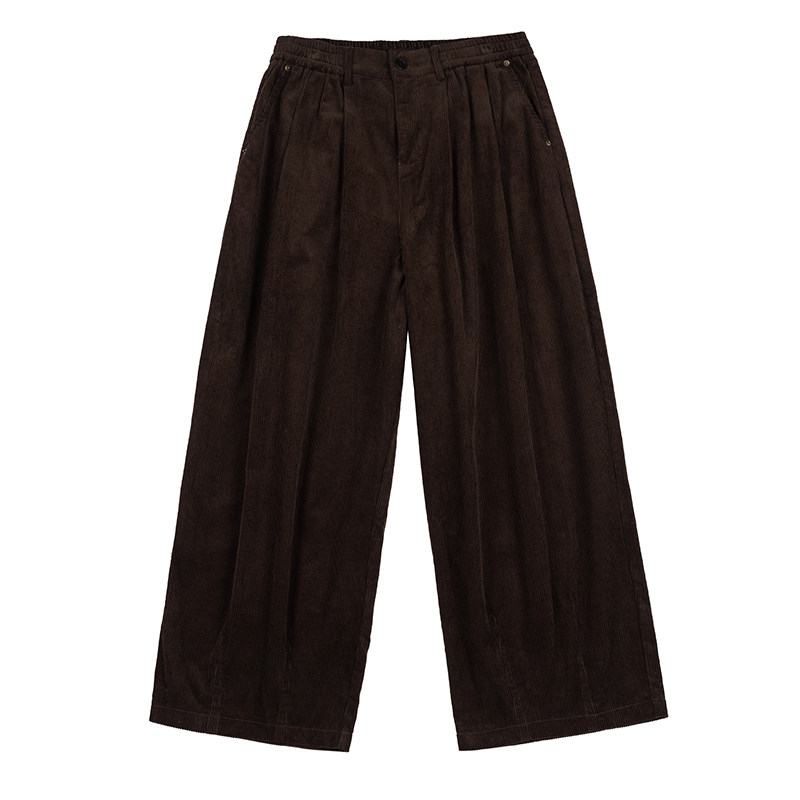 📚 NOEARS秋冬棕咖色灯芯绒复古阔腿裤cityboy日系宽松工装休闲裤