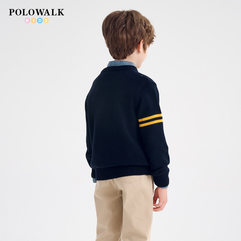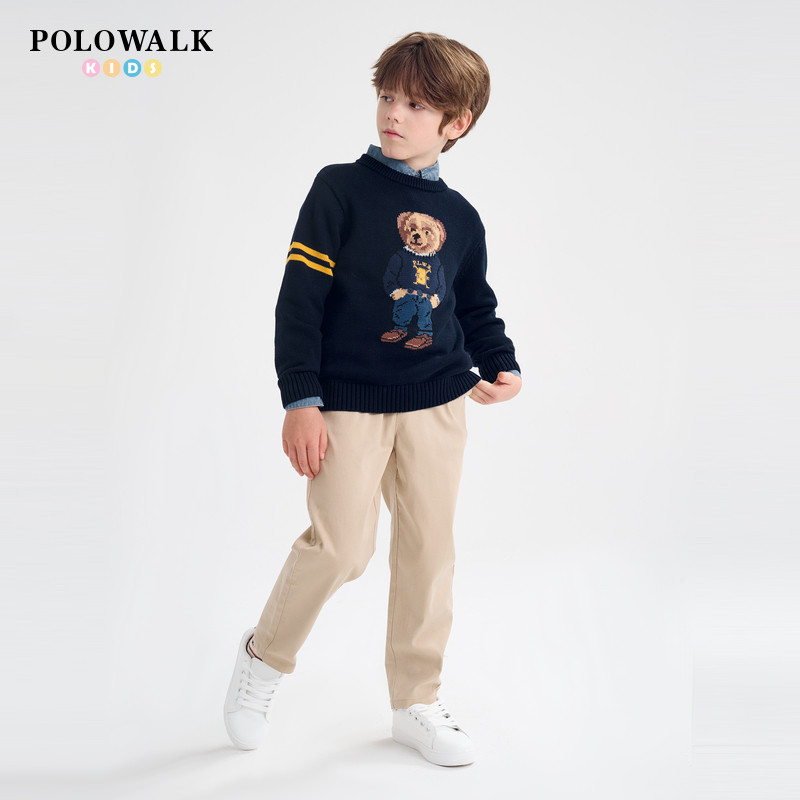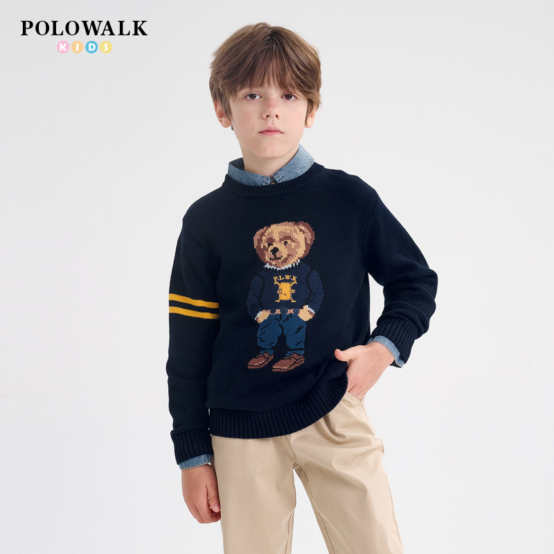 📚 POLOWALK童装男童毛衣2025秋季新款保罗儿童学院风小熊针织衫上衣