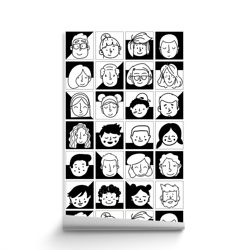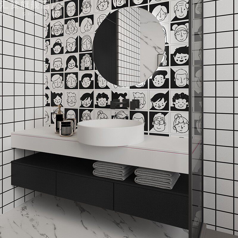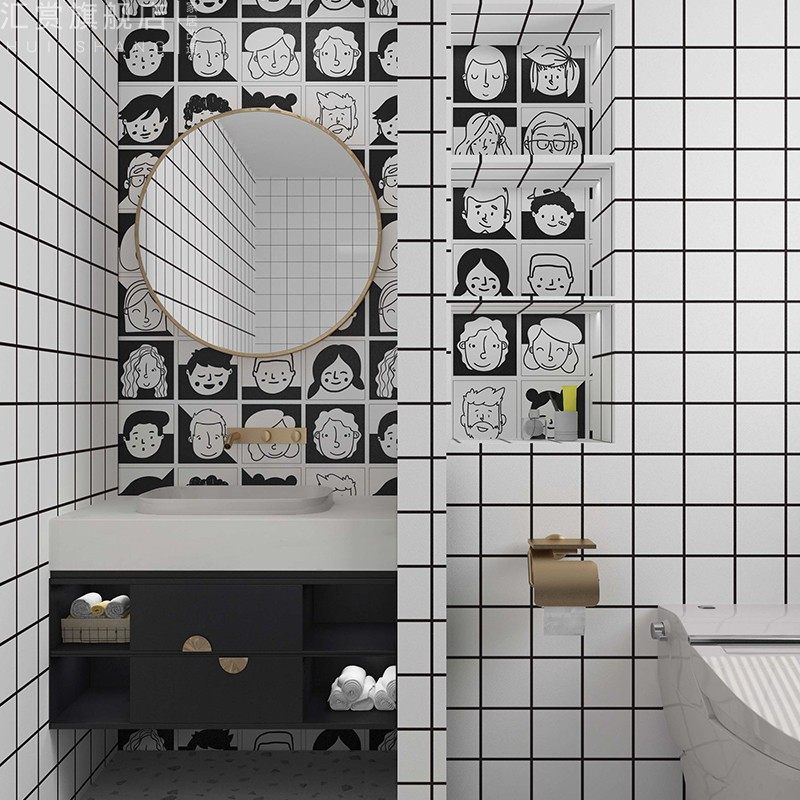 📚 浴室防水贴纸卫生间墙贴黑白动漫墙纸漫画头像壁纸卡通瓷砖贴自粘