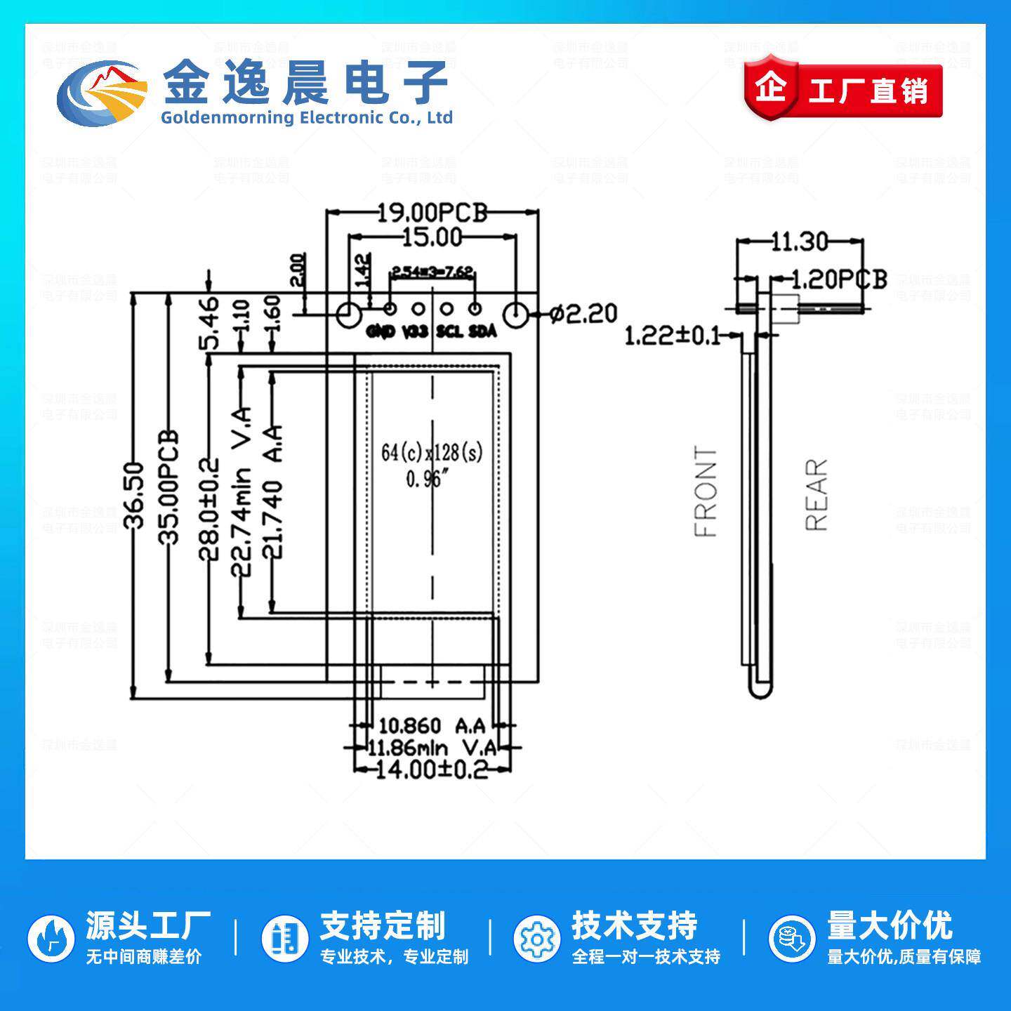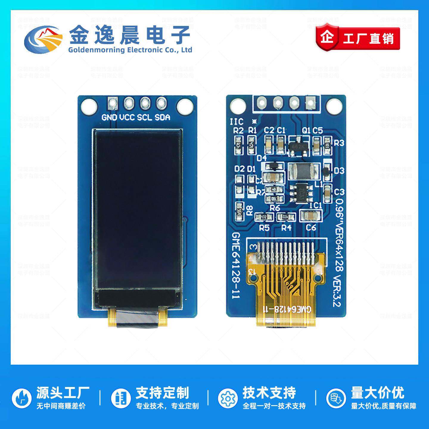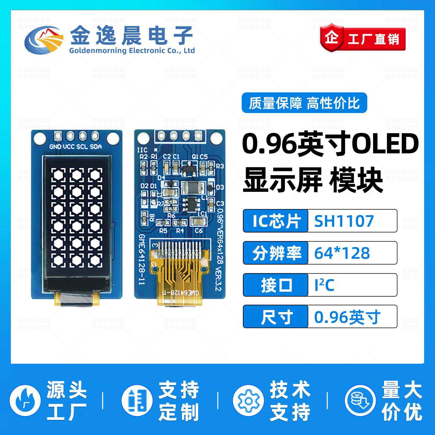 📚 金逸晨0.96寸OLED液晶屏SH1107小屏幕64x128显示模块4针单色屏IIC