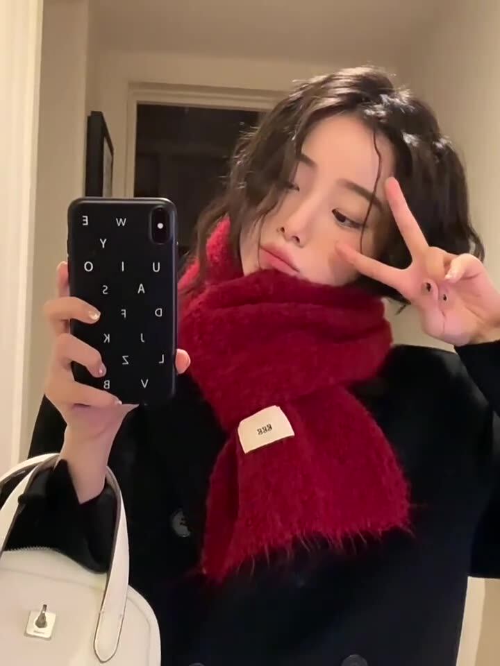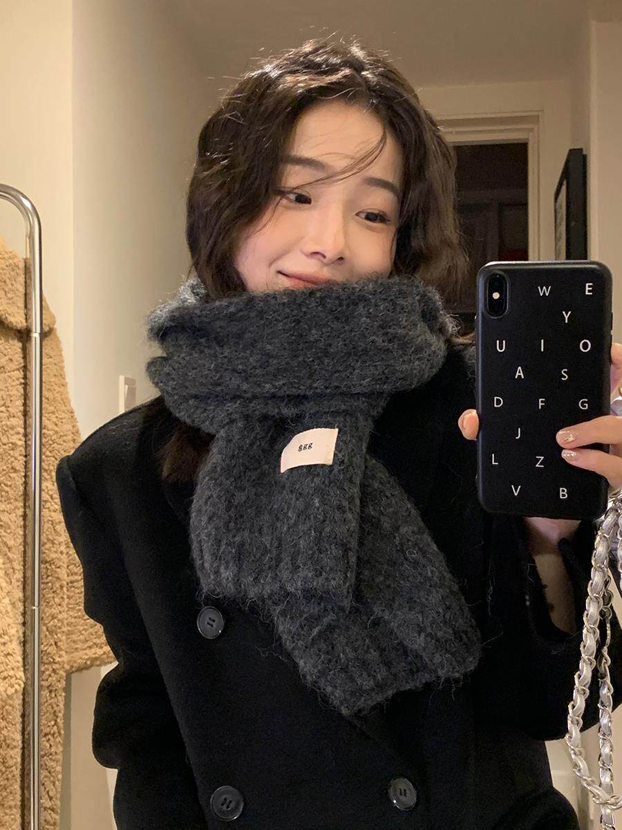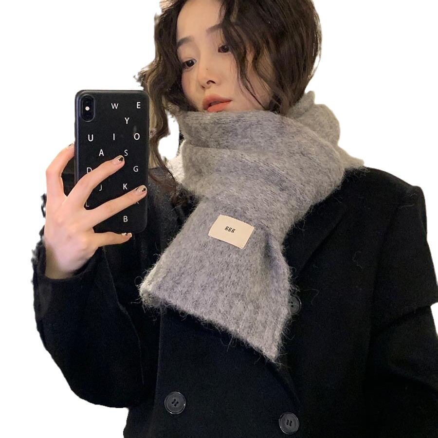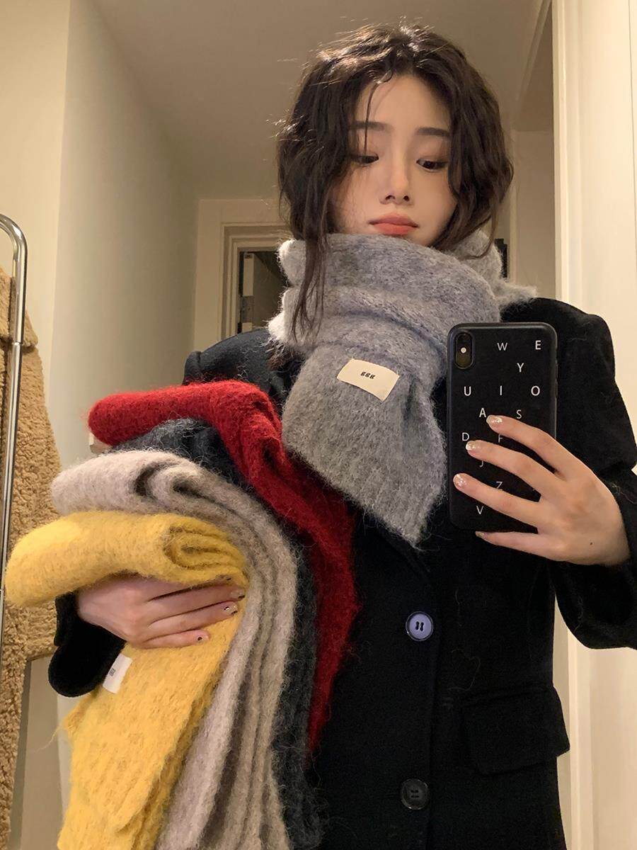 📚 含羊毛~纯色ggg针织围巾女冬天纯色显白针织毛线保暖加厚学生围脖