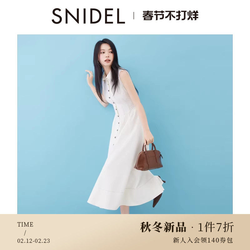 📚 SNIDEL2025秋冬新品气质翻领无袖绑带收腰衬衫连衣裙SWFO254136