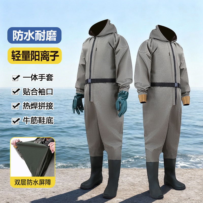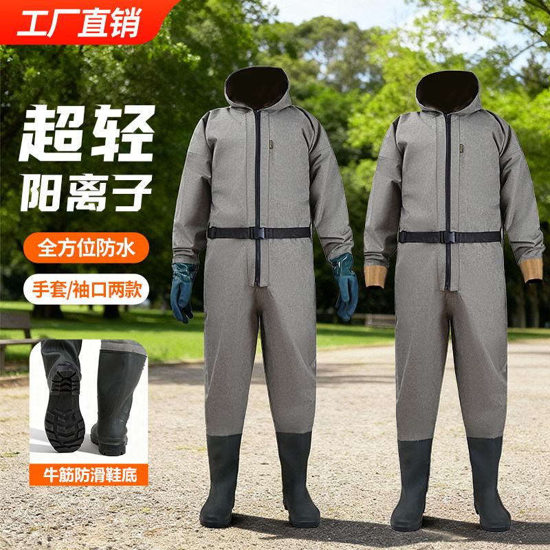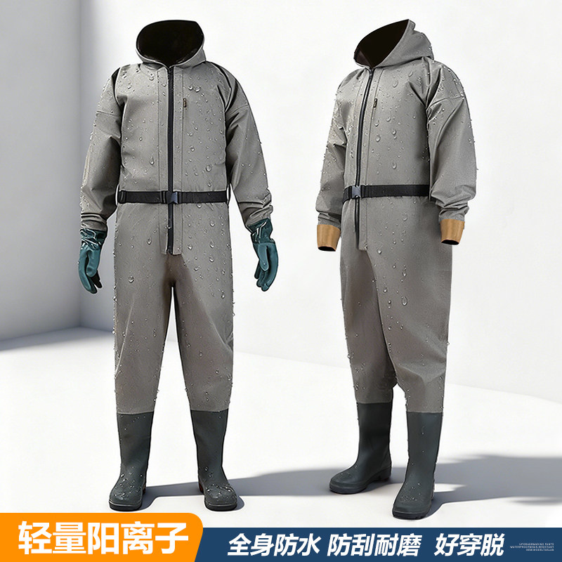📚 翡仕英阳离子全身防水服捕鱼撒网挖藕防水轻便耐磨防滑鞋连体雨衣