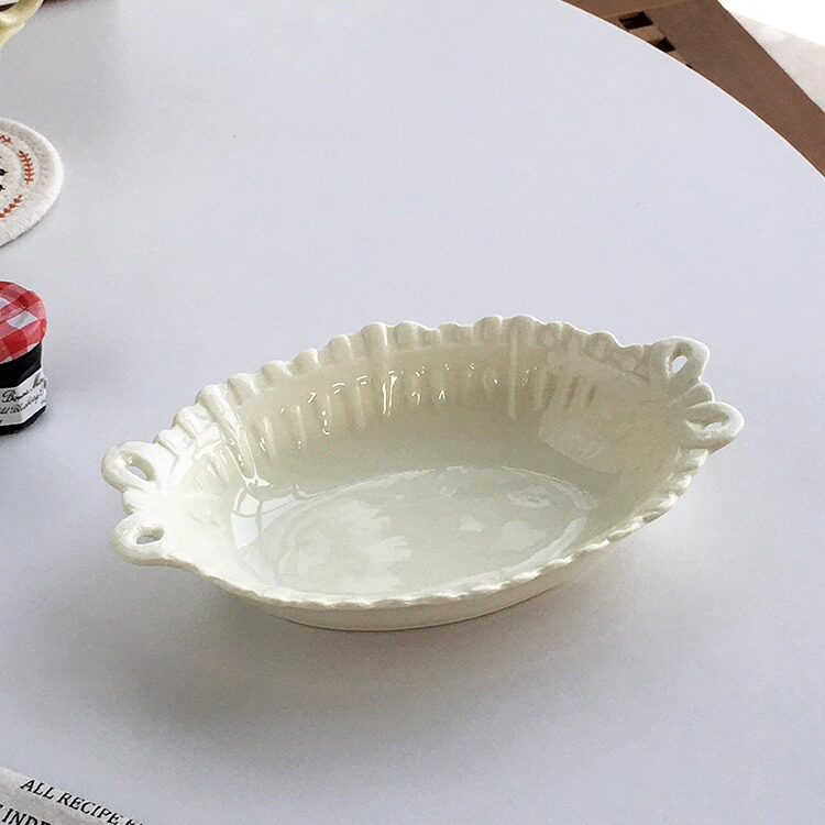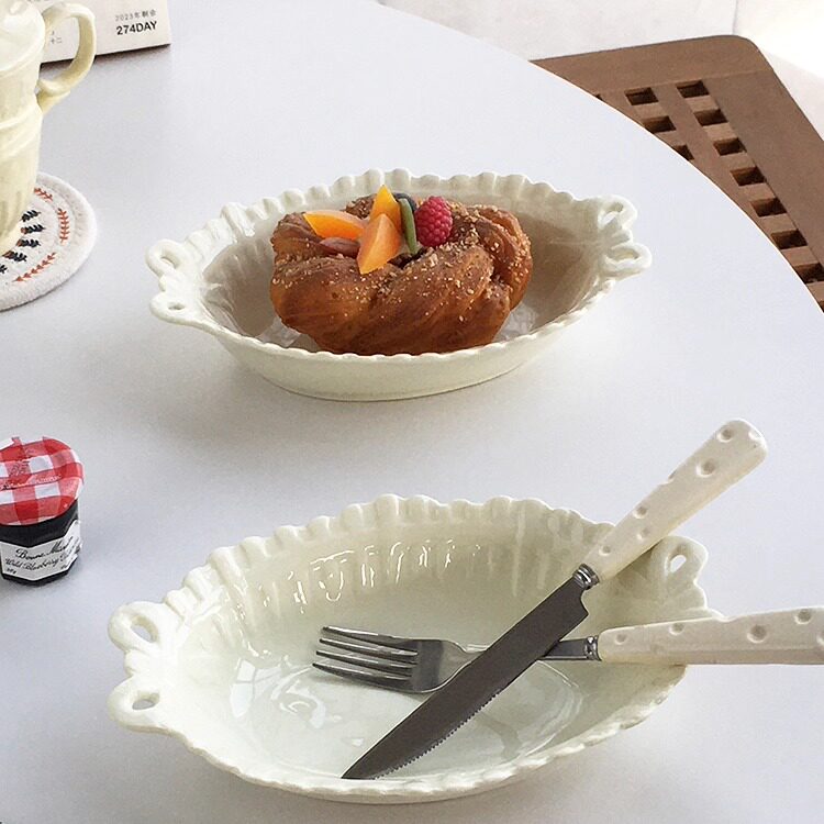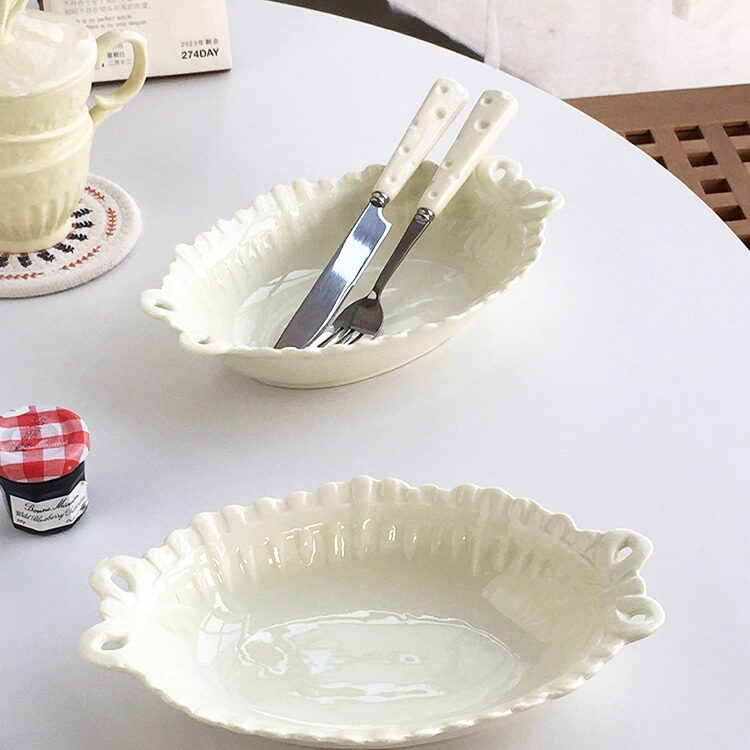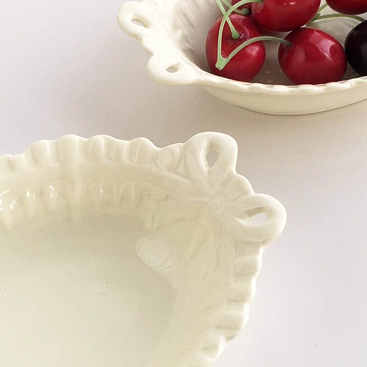 📚 Annie Garden 外贸出口 法式复古浮雕陶瓷蝴蝶结深盘菜汤盘沙拉盘