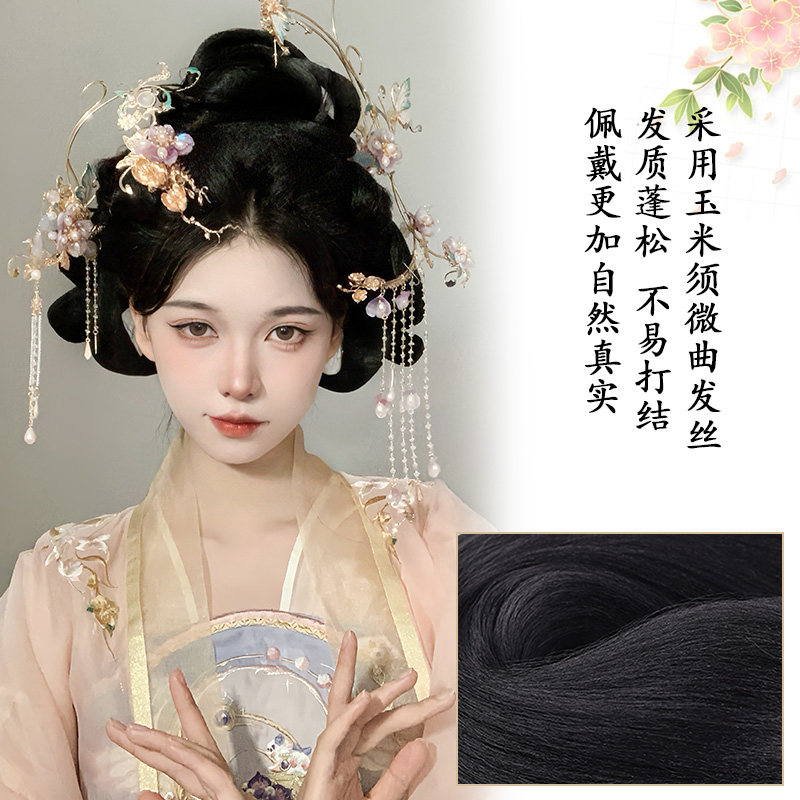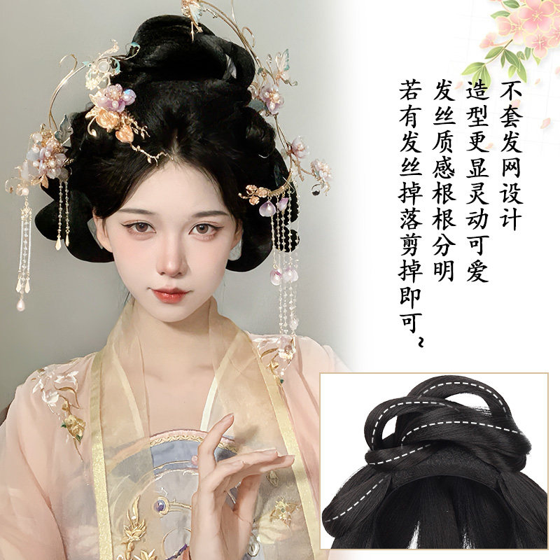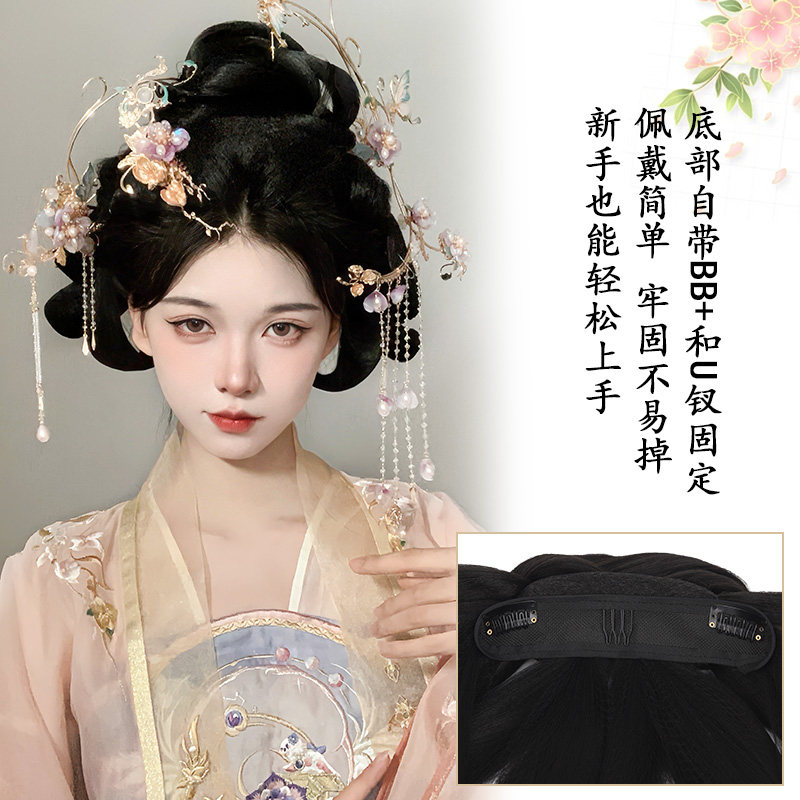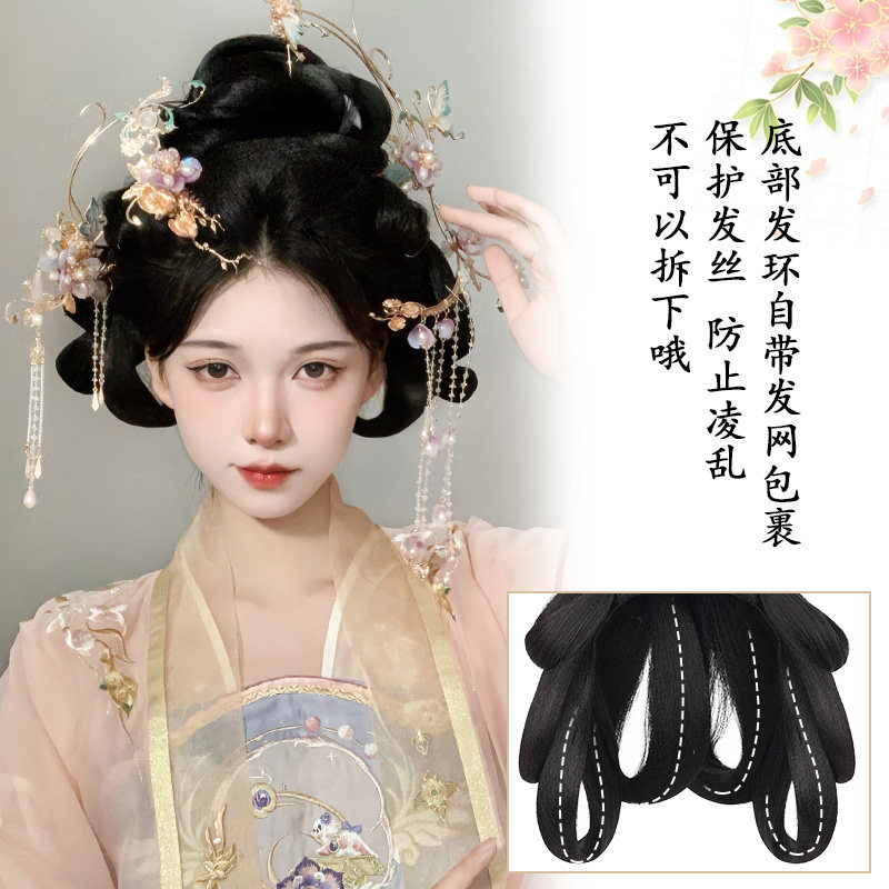 📚 古装汉服假发一体式全套头饰古风头发假发髻盘发明制唐风发包垫发