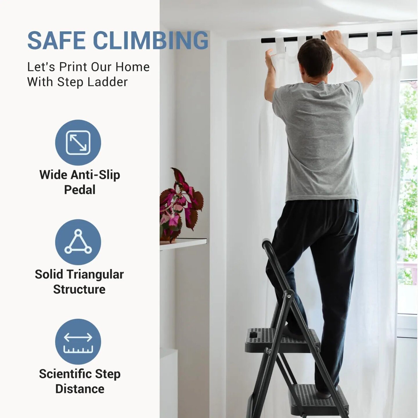 📚 JHK Step Ladder Folding 2 Step Ladder Stool with Anti-Slip