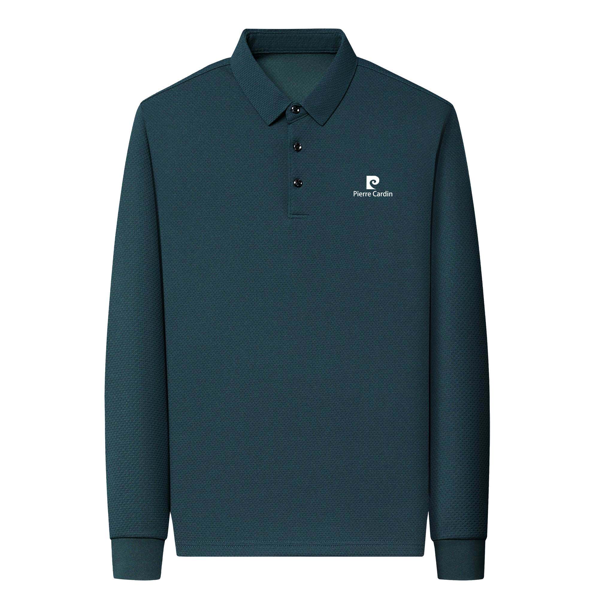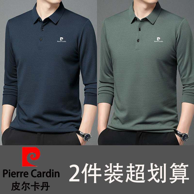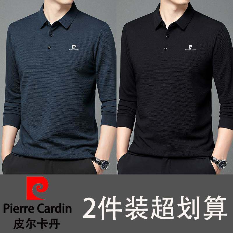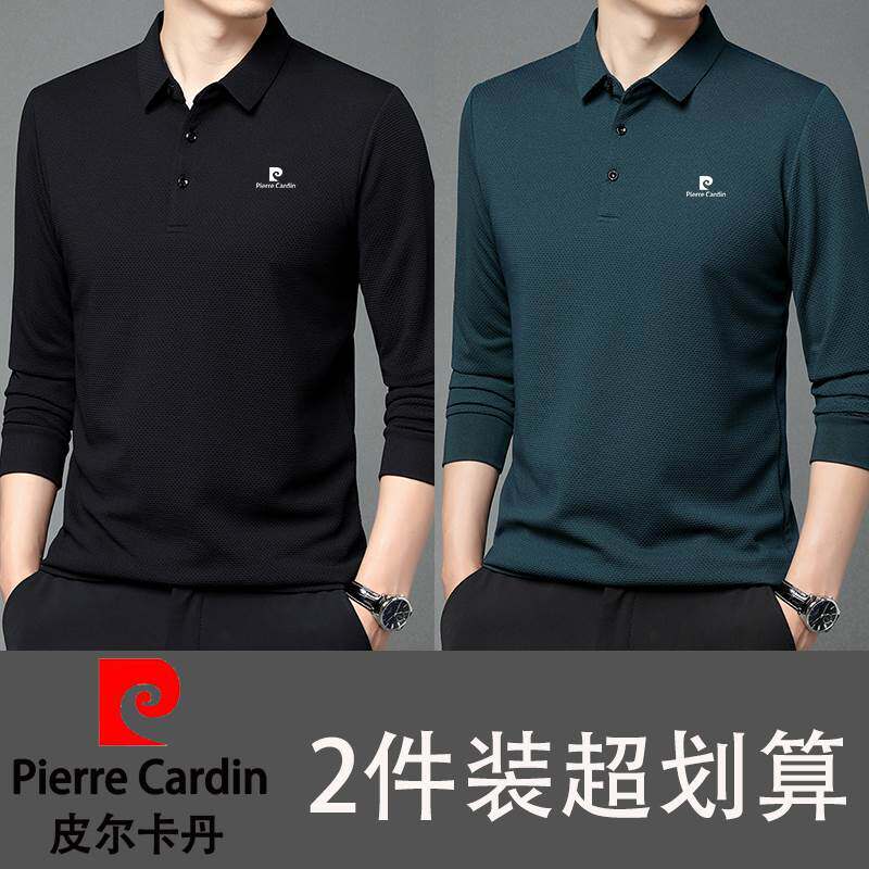 📚 皮尔卡丹买一送一男士长袖t恤polo衫翻领华夫格纯棉秋季休闲中年