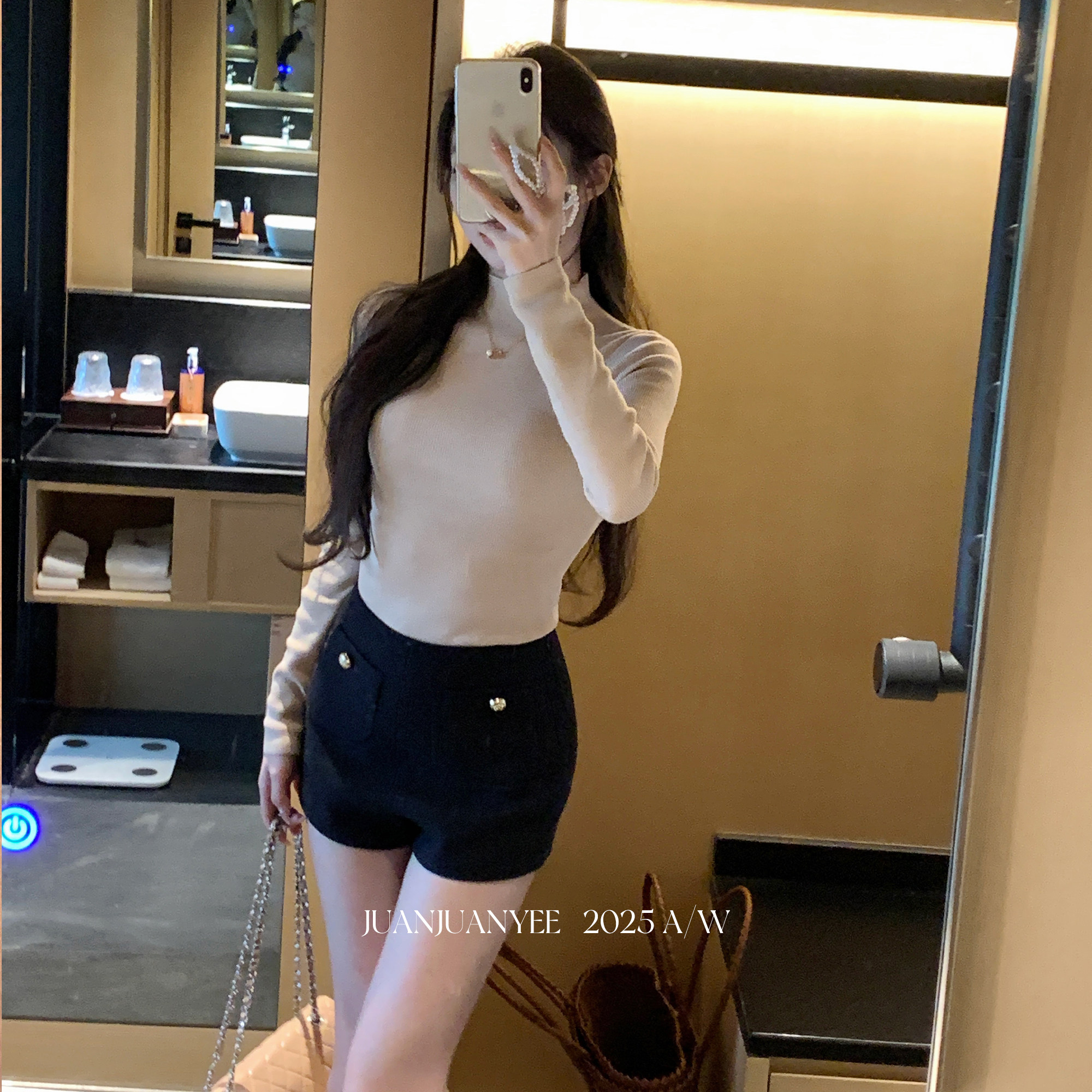 📚 juanjuanyee【钓系姐姐】气质半高领中袖羊毛针织修身显瘦上衣