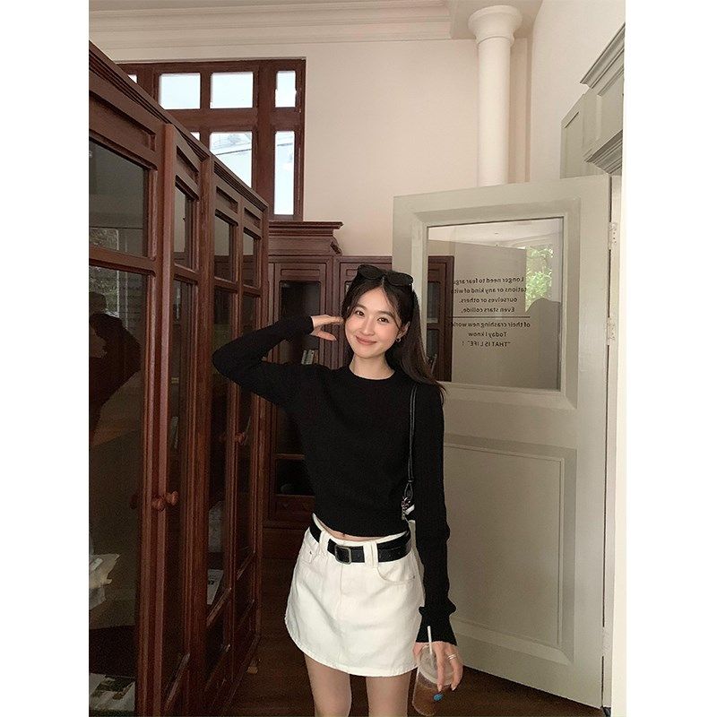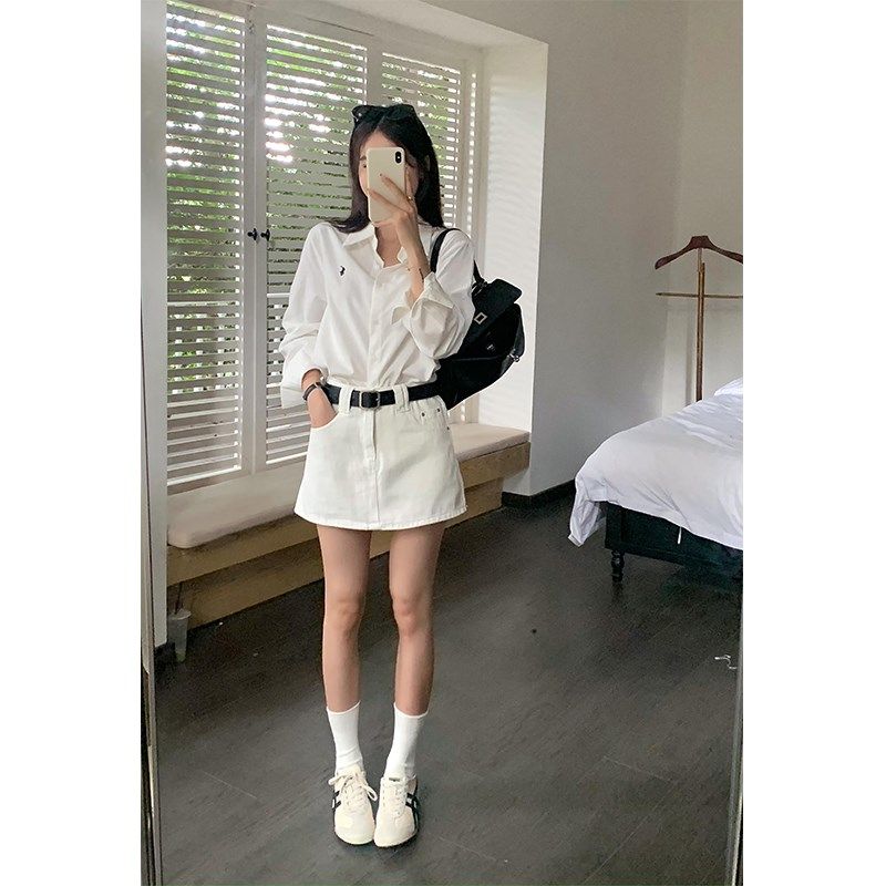 📚 豆仁家 美式复古白色牛仔半身裙新款高腰包臀短裙显瘦百搭a字裙子
